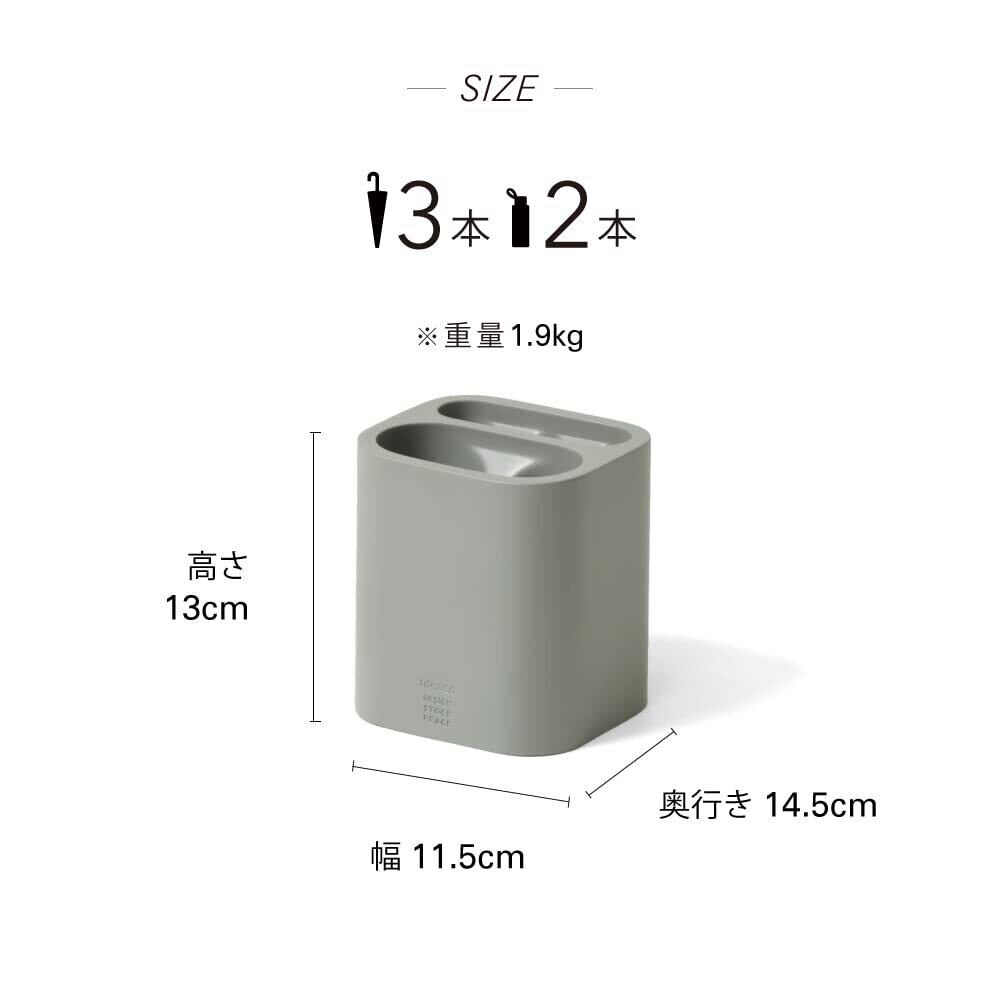 長傘3 本、折りたたみ傘2 本 「折りたたみ傘も収納できてコンパクトに!」がコンセプトである"BICO"のリニューアル傘立てとして2010年にデビューした"BICOmini"。 2022年、シックなニュートラルカラーにリニューアル。 折りたたみ傘用の大きなホールにも長傘をホールドできるので、長傘を5本収納することもできます。 折り畳み傘の一時置き場としても重宝します。
