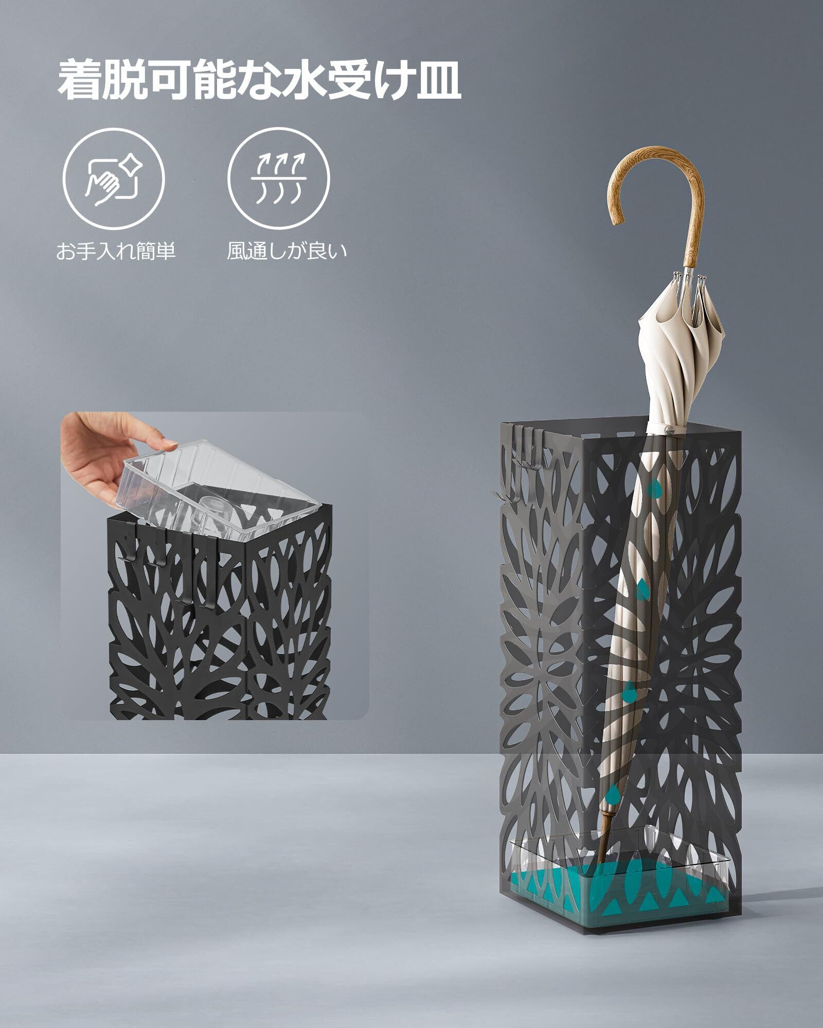 SONGMICS 傘立て おしゃれ スリム アイアン 北欧 大容量 シンプル 黒 ブラック かさたて 傘たて 傘立 モノトーン アンブレラホルダー アンブレラスタンド アンティーク コンパクト かさ立て 玄関収納 レインラック LUC026B33