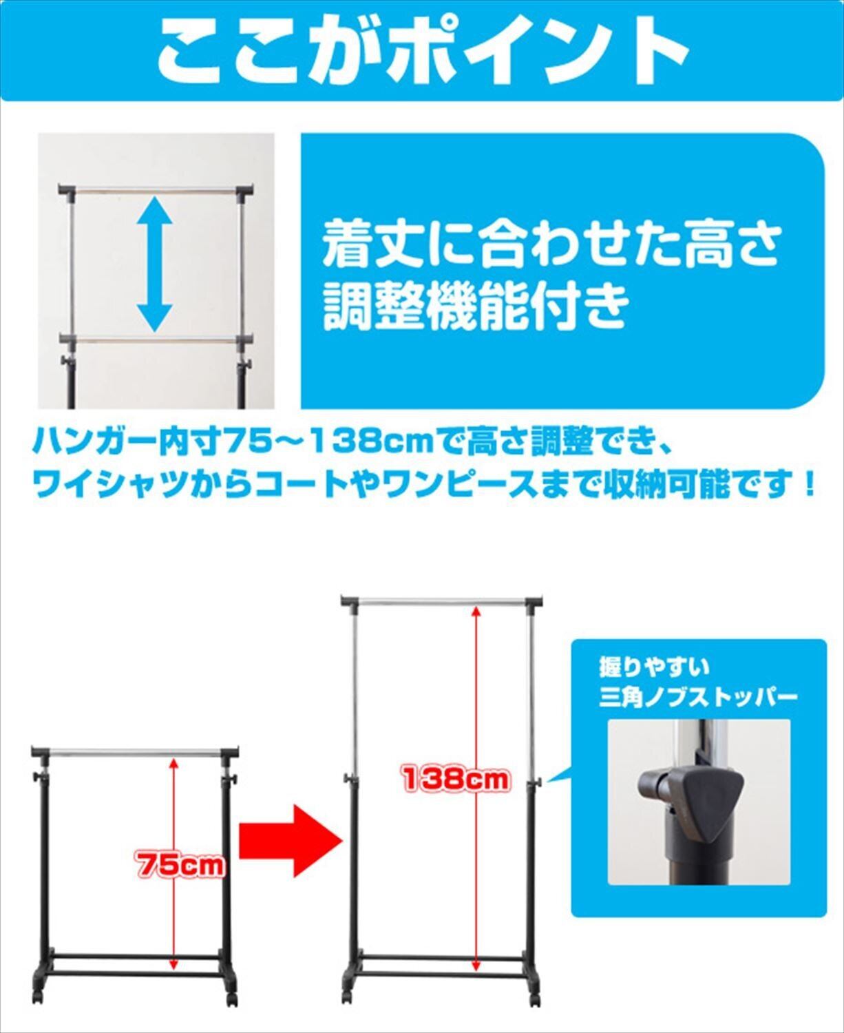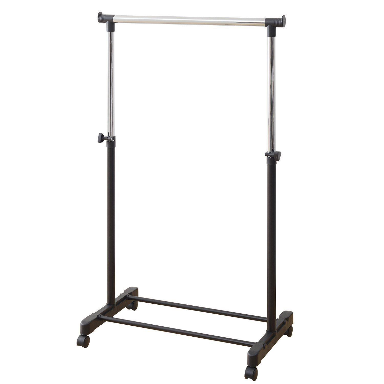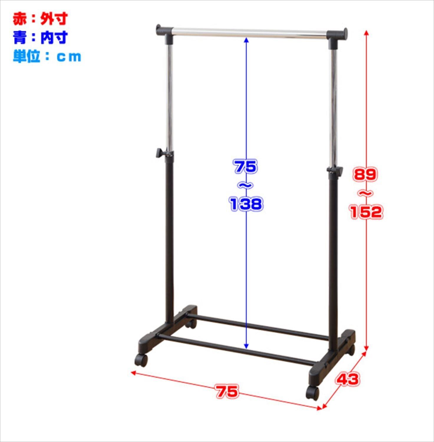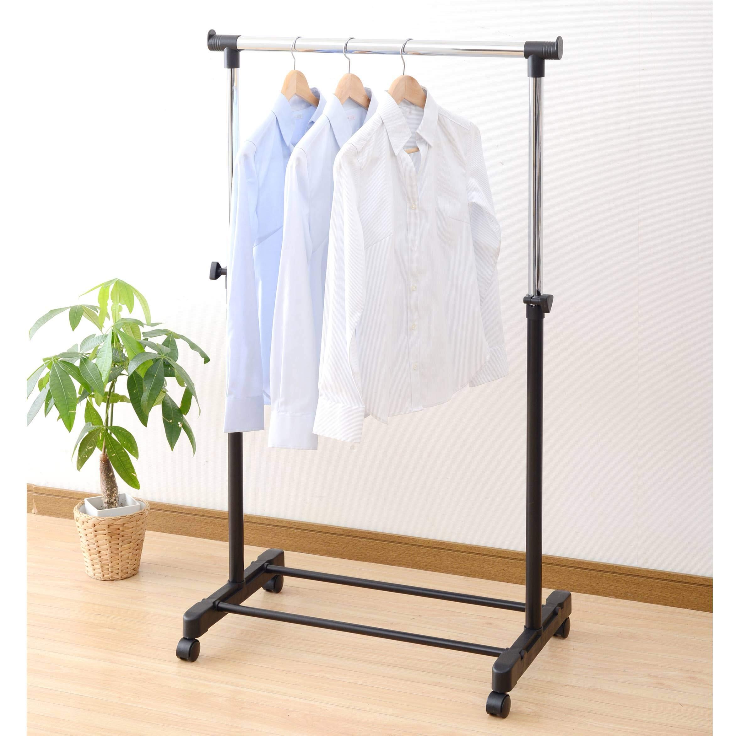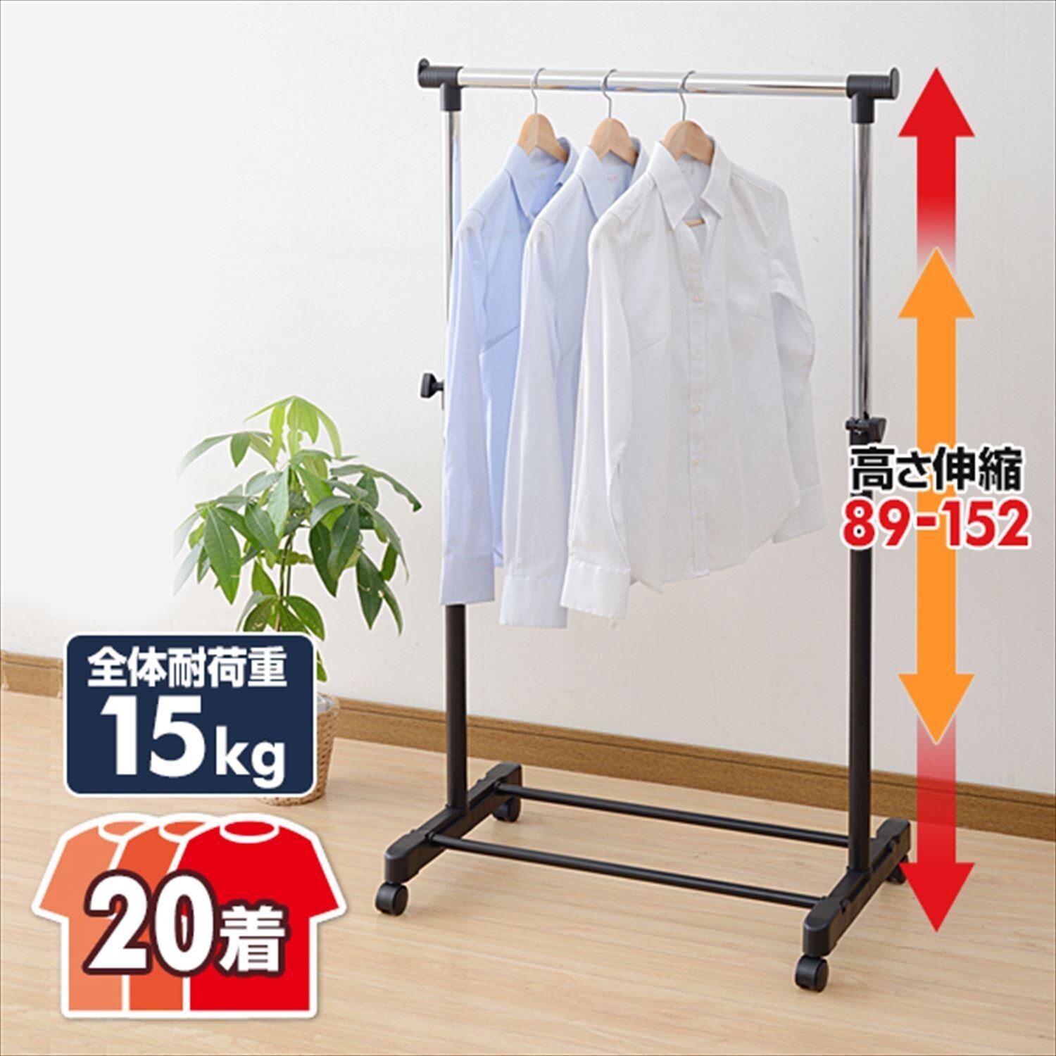 山善(YAMAZEN) 高さ伸縮パイプハンガーラック シングル キャスター付き ブラック MKS-S(BK)(S)