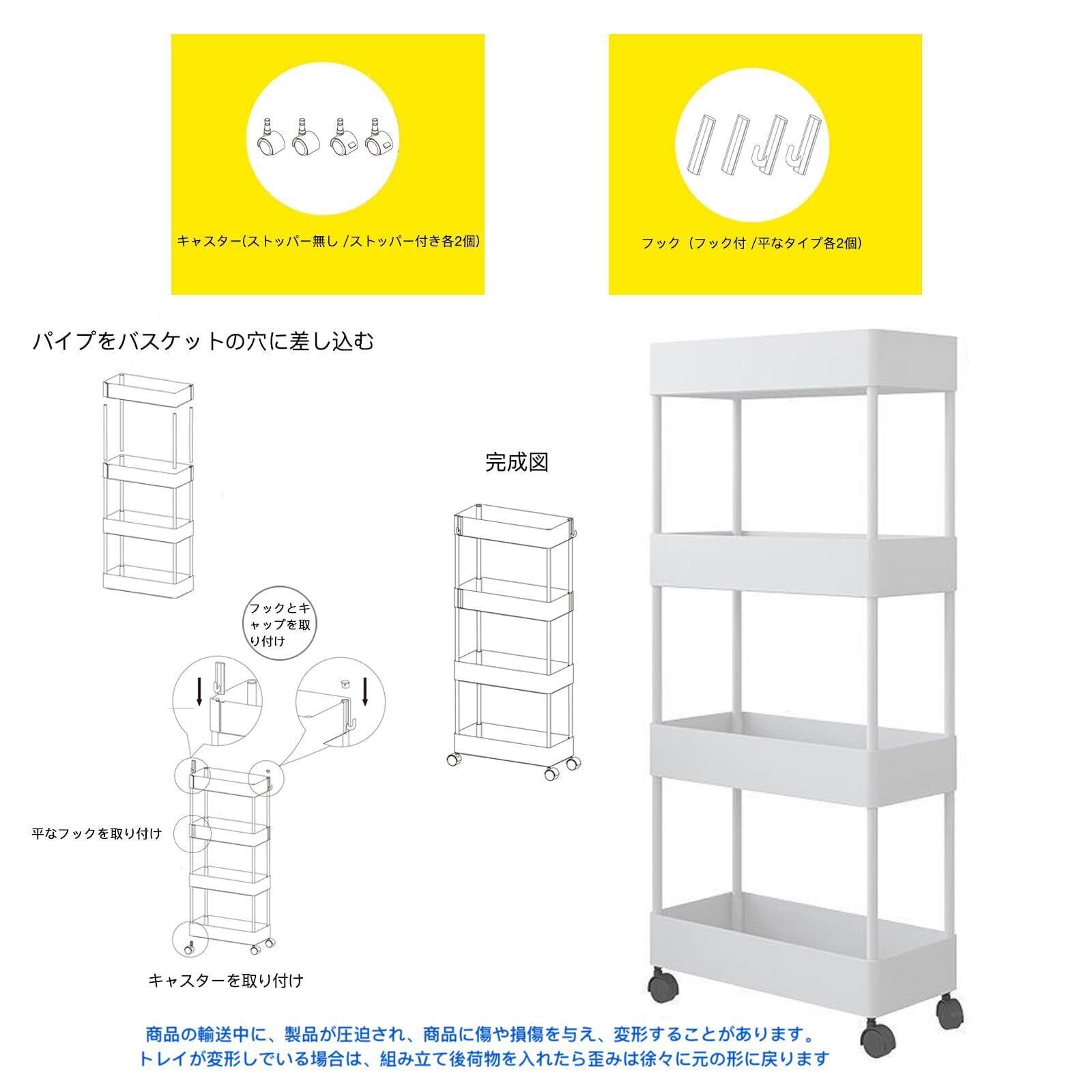 【商品仕様】使用サイズ:『4段式』38*13*85cm/『3段式』40*13*61cm 大容量:500mlのペットボトルの収納:1段につき、7〜10本収納可能です。耐荷重:約20kg 素材はプラスチックで、軽くて移動しやすいのがメリットですが、安定性に欠けるのがデメリットなので、安定性を高めるために洗濯洗剤などの重いものを下の層に置くことをおすすめします。ニーズによりバスケットを減らして、段数を自由に決めて、一段〜四段まで使えます。 高級な材質は採用なので、防錆性、耐久性、安定性が高いです。
