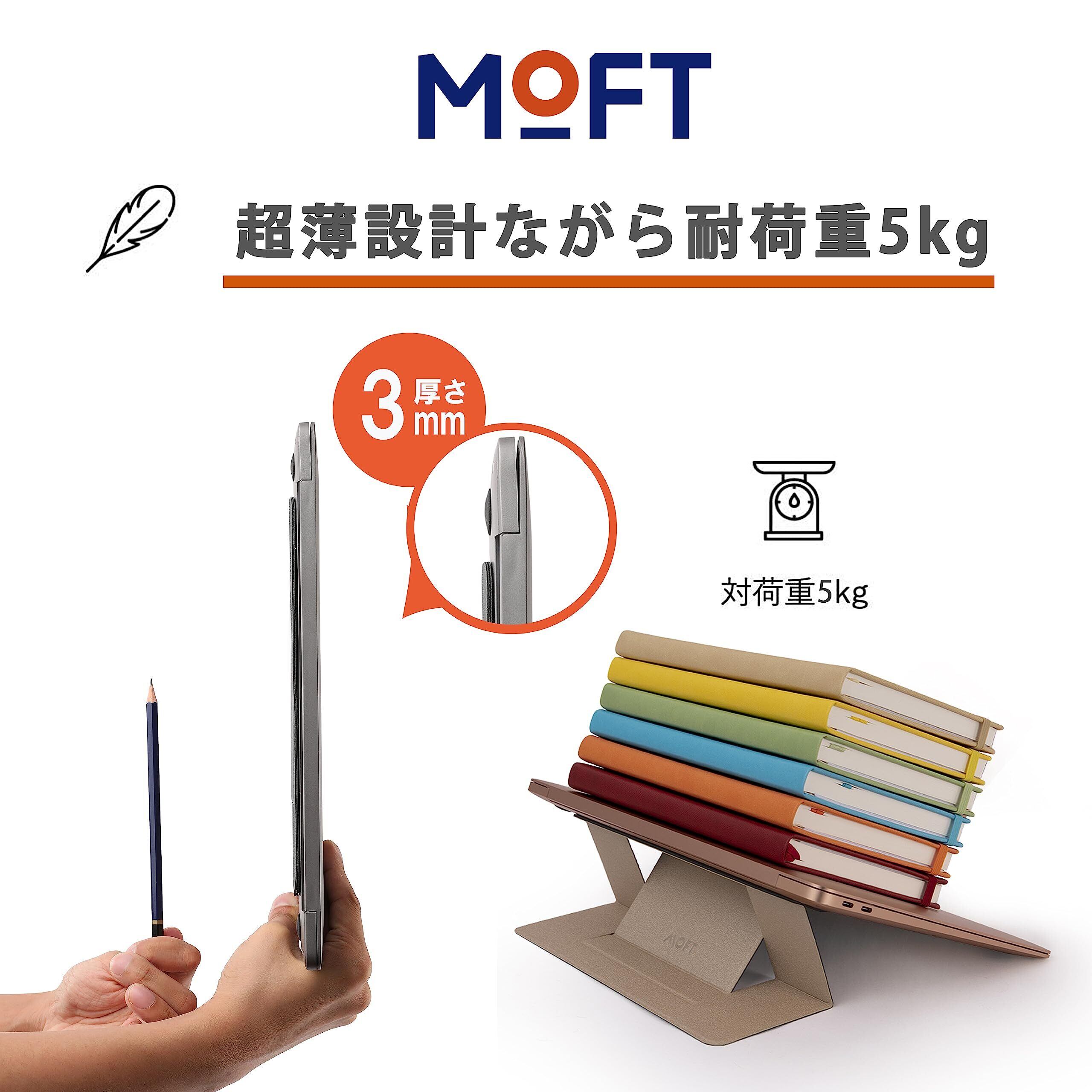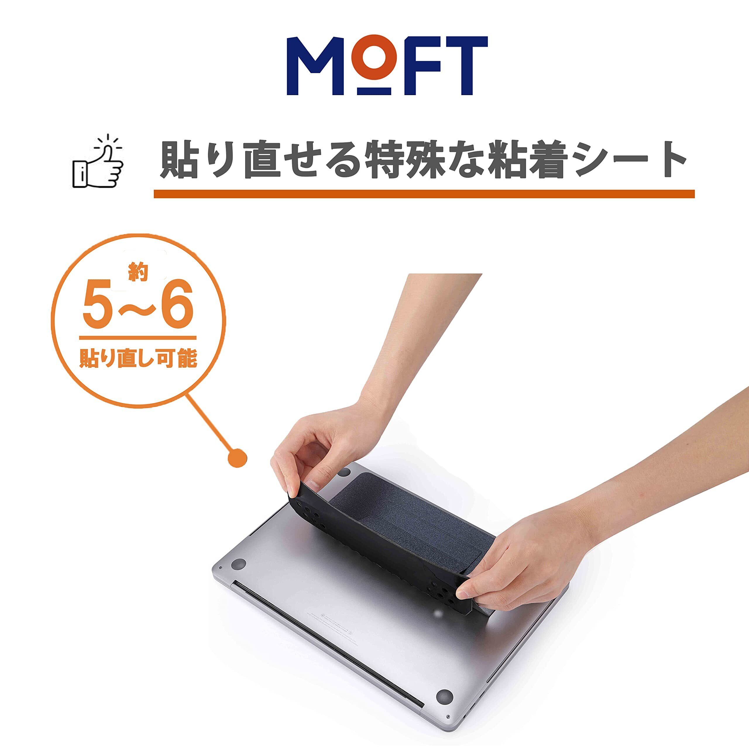 MOFT 【新アップグレード版】放熱穴付き ノートパソコンスタンド PCスタンド 二段階調整可能 超軽量 超極薄 折り畳式 人間工学設計 磁石設計 腰痛/猫背防止 Macbook Pro/Air/タブレット/その他ノートPC 最大15.6インチまで対応 (【粘着式】スペースグレー)