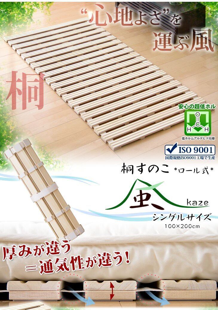 【商品説明】夏場のじめじめ、冬の結露。一年中心配なお布団の湿気対策に、通気性抜群の桐すのこ*風*が登場!平らな桐すのこに更に凹凸をつけたリブ加工で通気性がUP!布団を敷いたまま三つ折れにすることもでき、布団の片付けがとっても簡単です。