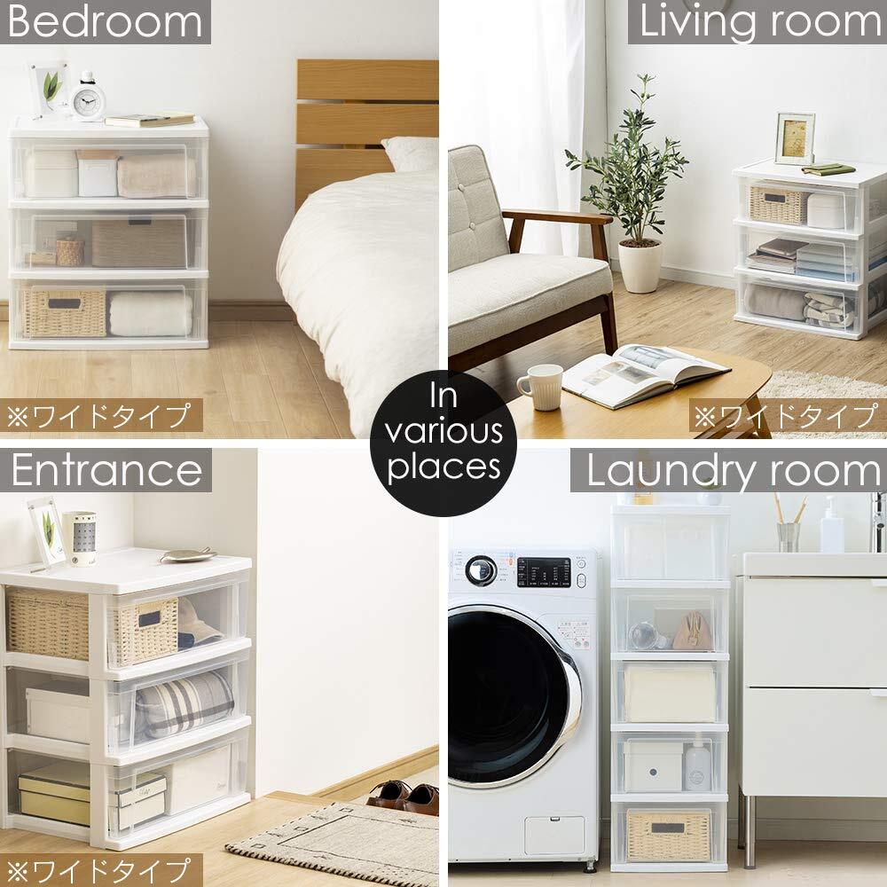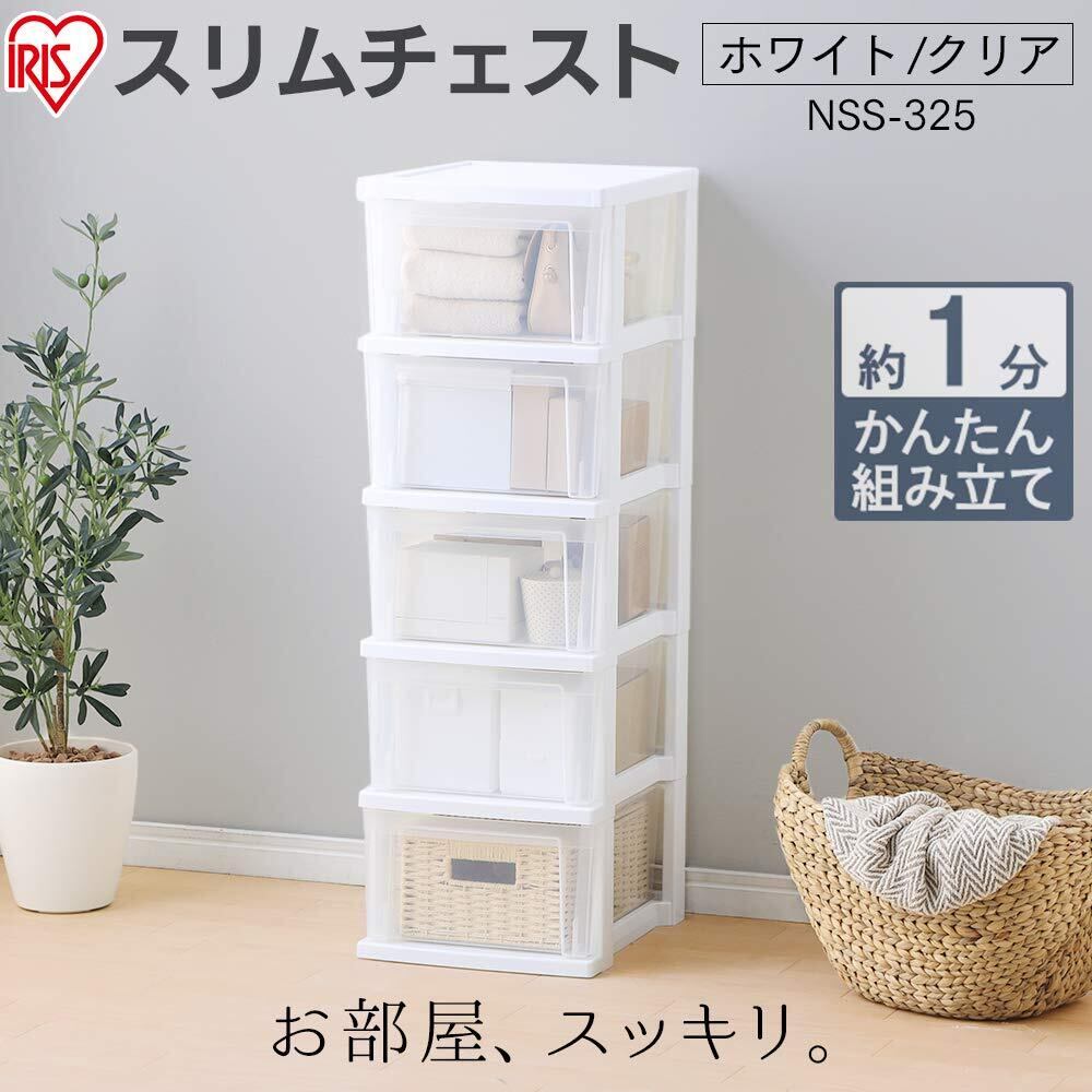 アイリスオーヤマ(IRIS OHYAMA) チェスト スリムチェスト 5段 頑丈設計(一体型フレーム) 水回りOK NSS-325 幅30.9×奥行39×高さ96.3㎝ ホワイト/クリア
