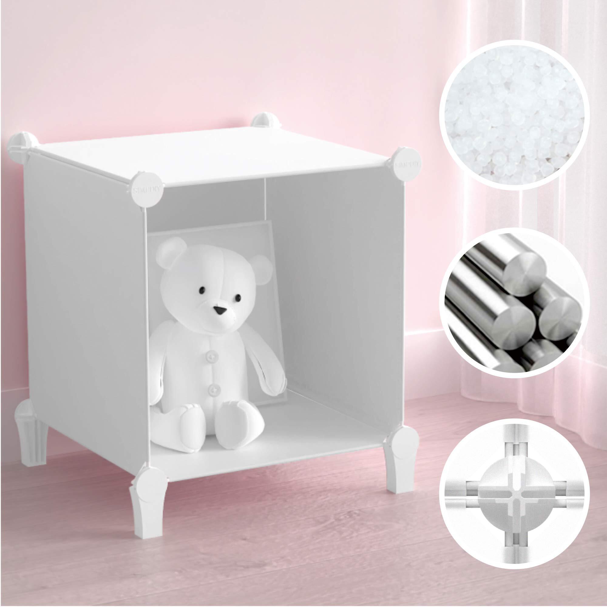 高品質素材:本棚は、ハイスペックな厚みのあるPP素材のパネルと高品質ABSコネクターで構成され、部品間の結合を強固にしています。金属フレーム全体を補強し、キューブ1個あたり5kgまでの荷重に耐える頑丈な構造で、強度が高く衝撃に強く、変形しにくいのが特徴です。