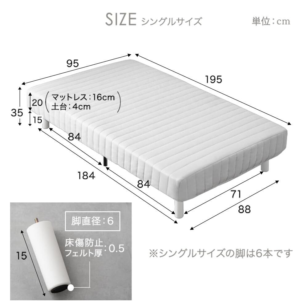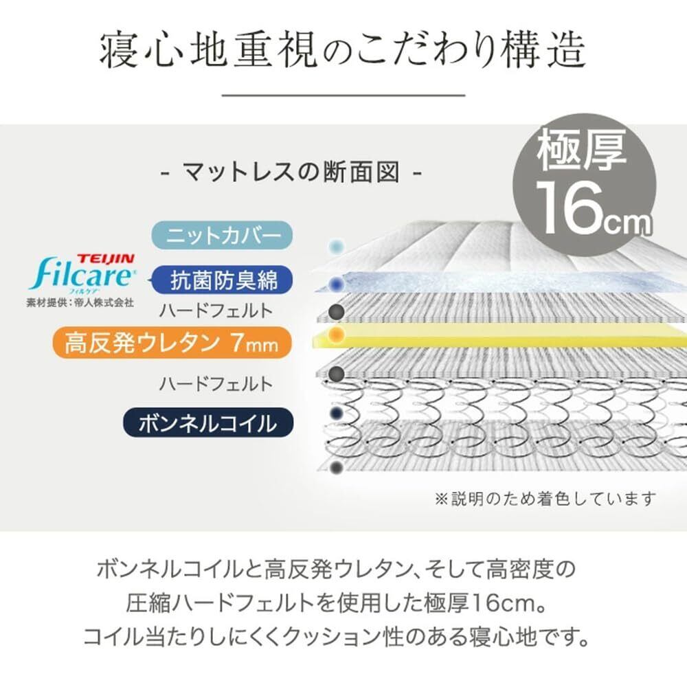 【備考】組立品 ※マットレスは約1~2日で復元します。気温や温度により3~14日かかる場合もあります。 ※高さ16cm以上の脚への付け替えは安全上、推奨しておりません。