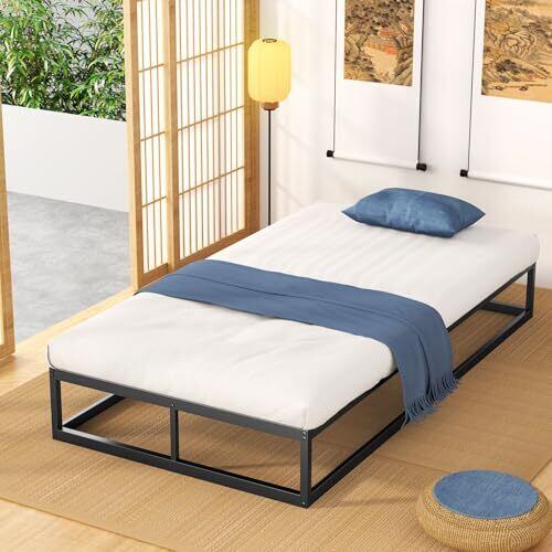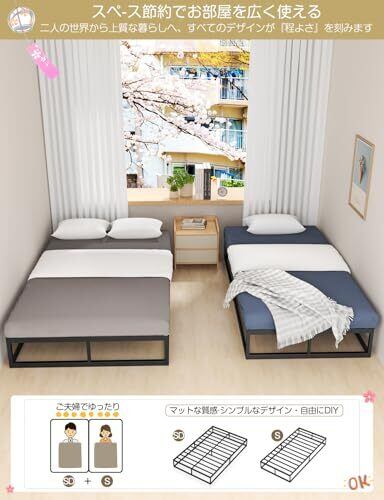 【きしみなし・耐久性に優れるパイプベッド】こちらのベッドフレームは全部金属のすのこを支えるタイプで使用感はきしみやがたつきがなく、木製のベッドフレームより倍程頑丈です。