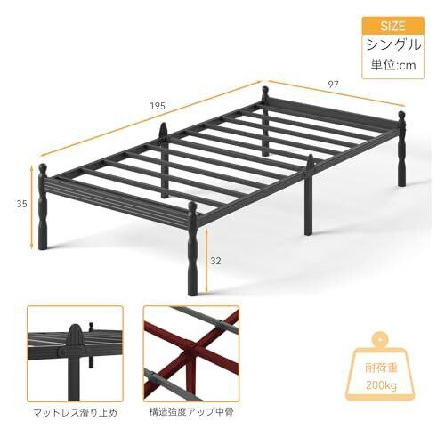 [ベッドフレーム シングル] パイプベッド スチール製すのこ 耐久性 静音設計 通気性 大容量収納空間 簡単組立 高さ 35.5