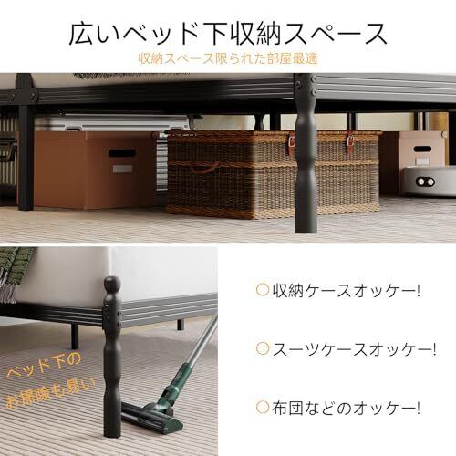 時間に耐える頑丈さ 本ベッドフレームは高強度スチールとすのこ構造を採用し、重いマットレスにも対応可能な優れた耐久性を実現。一体型構造で揺れにくく、きしみ音も発生しにくいため、静かで快適な睡眠環境を提供します