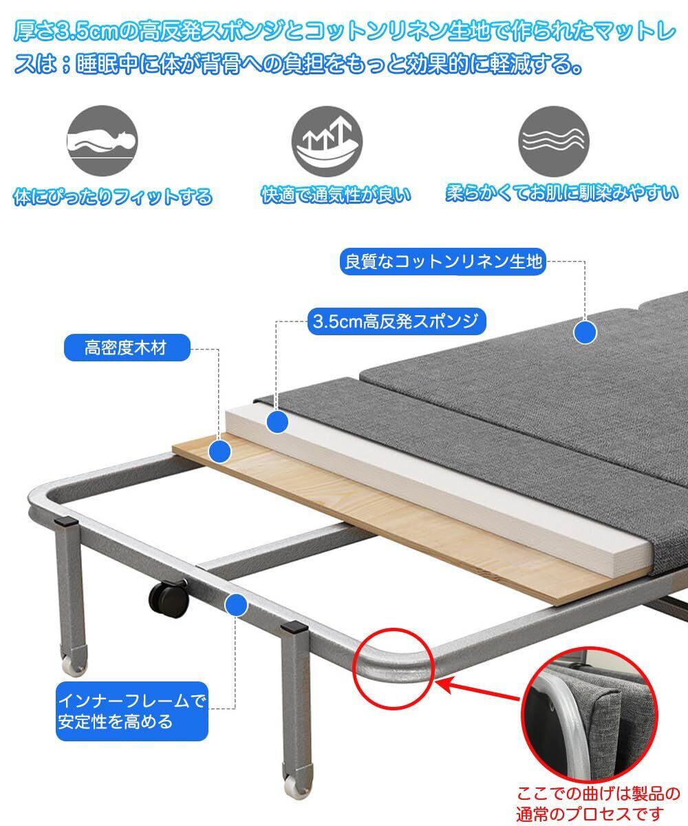 おりたたみベッド コンパクト 折りたたみ ベッド シングル 簡易ベッド 折り畳み ベッド マットレス付き 組立不要 おりたたみべッド 軽量小型 ワンルーム 仮眠 来客 子供部屋 簡単収納 キャスター付き 200kg耐荷重 (グレ「幅70CM」)