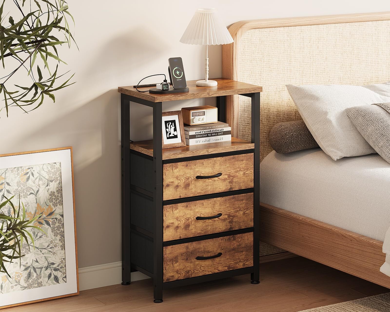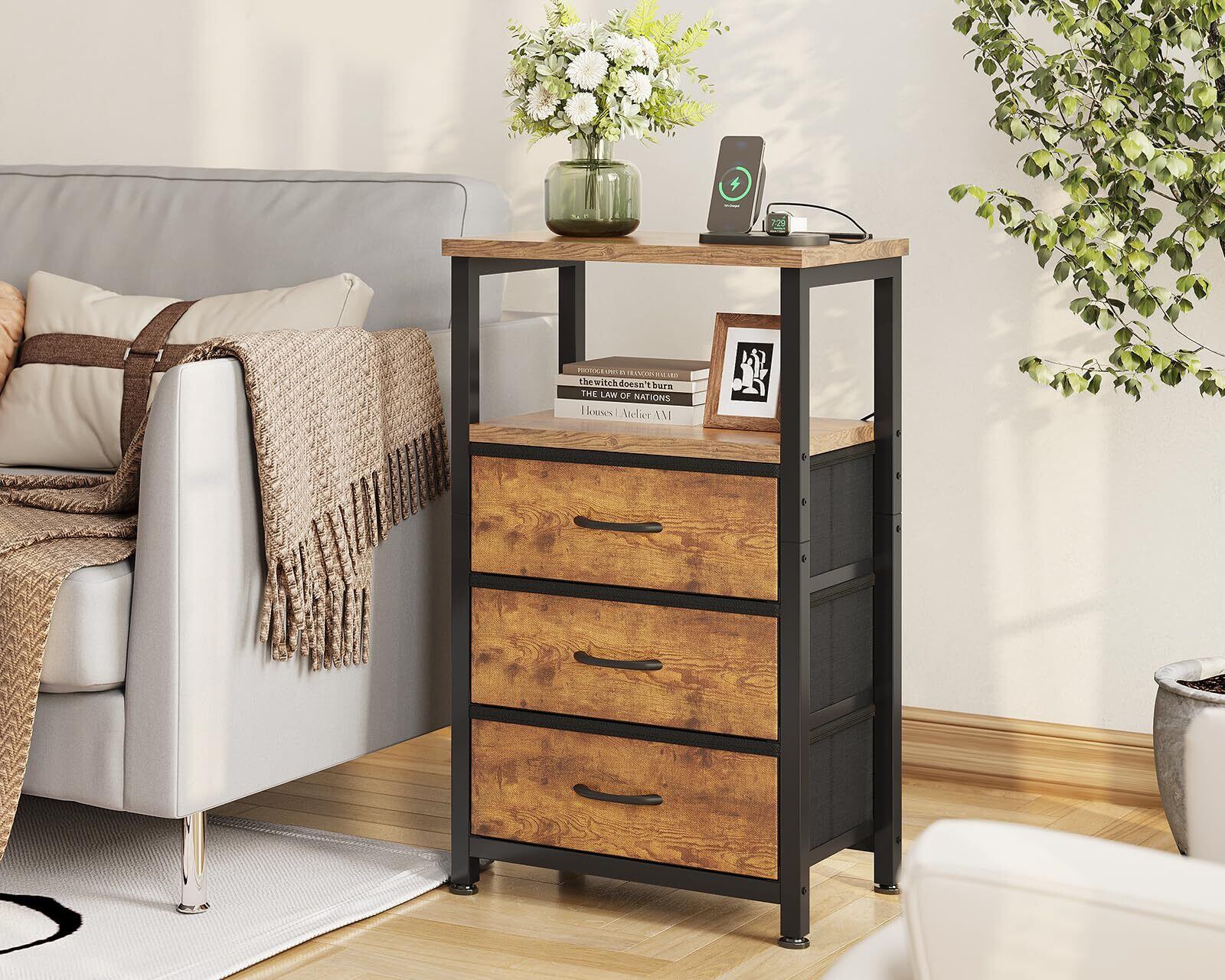 AODK サイドテーブル ナイトテーブル ベッドサイドテーブル コンセント付き 40×30×70cm 引き出し付き 収納付き ベッド横 (ビンテージ)