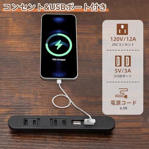 【USBポートコンセント付き&LEDライト】デスク天板の上にコンセント口2口とUSBの差し込み口2口を備え、パソコンの電源やスマートフォンの充電などを手近なところで取ることができるので便利です。PSE認証書があり、電気使用することが安全安心です。LEDライトには調光と調色機能があり、お部屋や気分に合わせて調整できます。暖かくて柔らかい家庭的な雰囲気を作り出します。