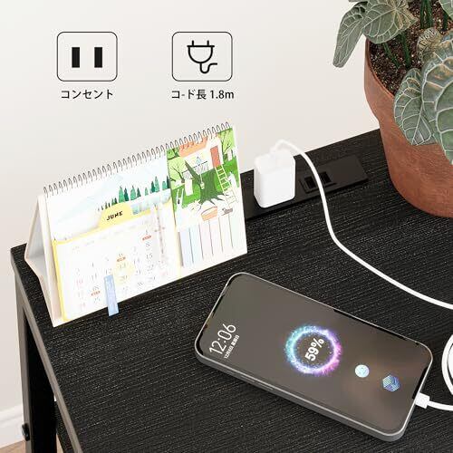 【多機能設計】ナイトテーブルの底部には360度回転できるキャスターが付いており、移動や掃除が非常に便利です。前部の2つのキャスターにはロック機能があり、位置を固定し、倒れるのを防ぐことができます。2つのコンセントが付いており、加湿器、ライト、電動歯ブラシなど収納キャビネットに置きたい小型家電の充電に大変便利で、煩雑な配線の手間も省けます。