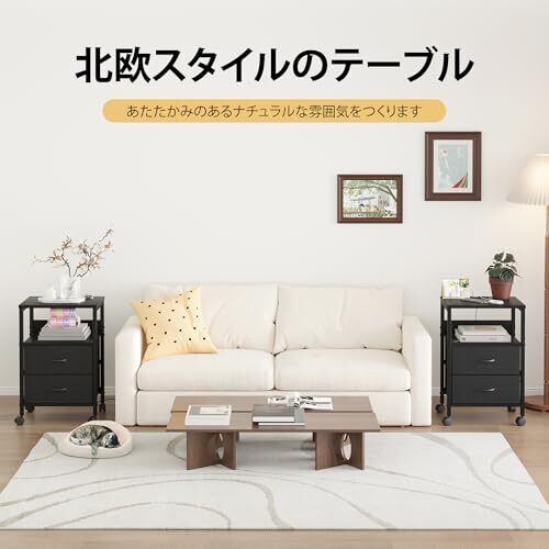 【安全な構造】丈夫な金属製のスチールフレームサイドテーブル、厚手の木製天板と棚板、金属スチールの組み合わせ構造で、耐久性が優れています。引き出しには通気性の良い不織布素材を使用しており、カビや臭い湿気が発生しにくく、色も美しく、安っぽさを感じさせません。