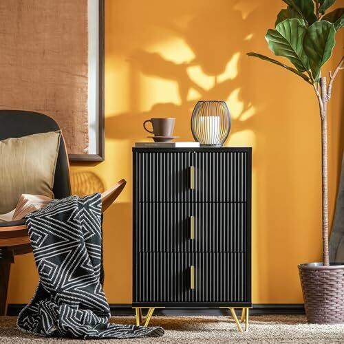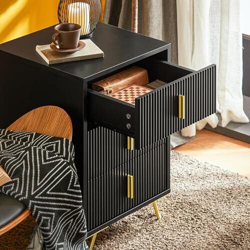 【オシャレ北欧風】ゴールド部件と黑いナイトテーブルを組み合わせってモダンな印象を与え、部屋に高級な雰囲気をもたらします。