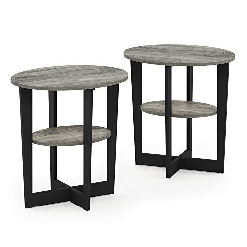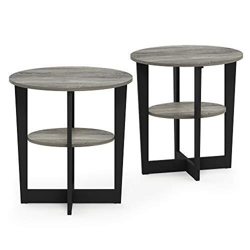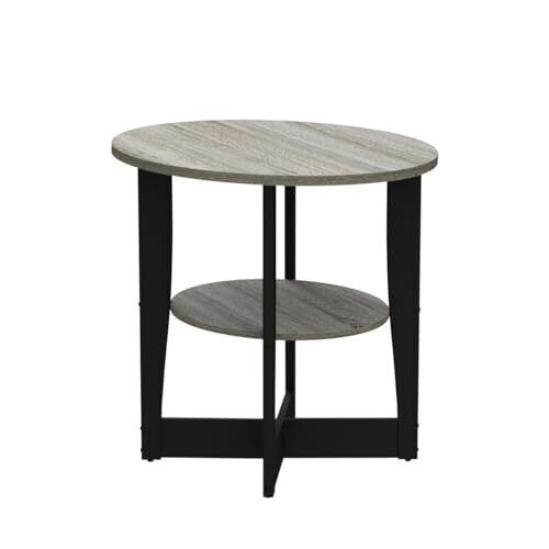 フリノ(Furinno) ジャヤ(JAYA) 楕円形ナイトスタンド ベッドサイドテーブル フレンチオークグレー/ブラック 2個セット