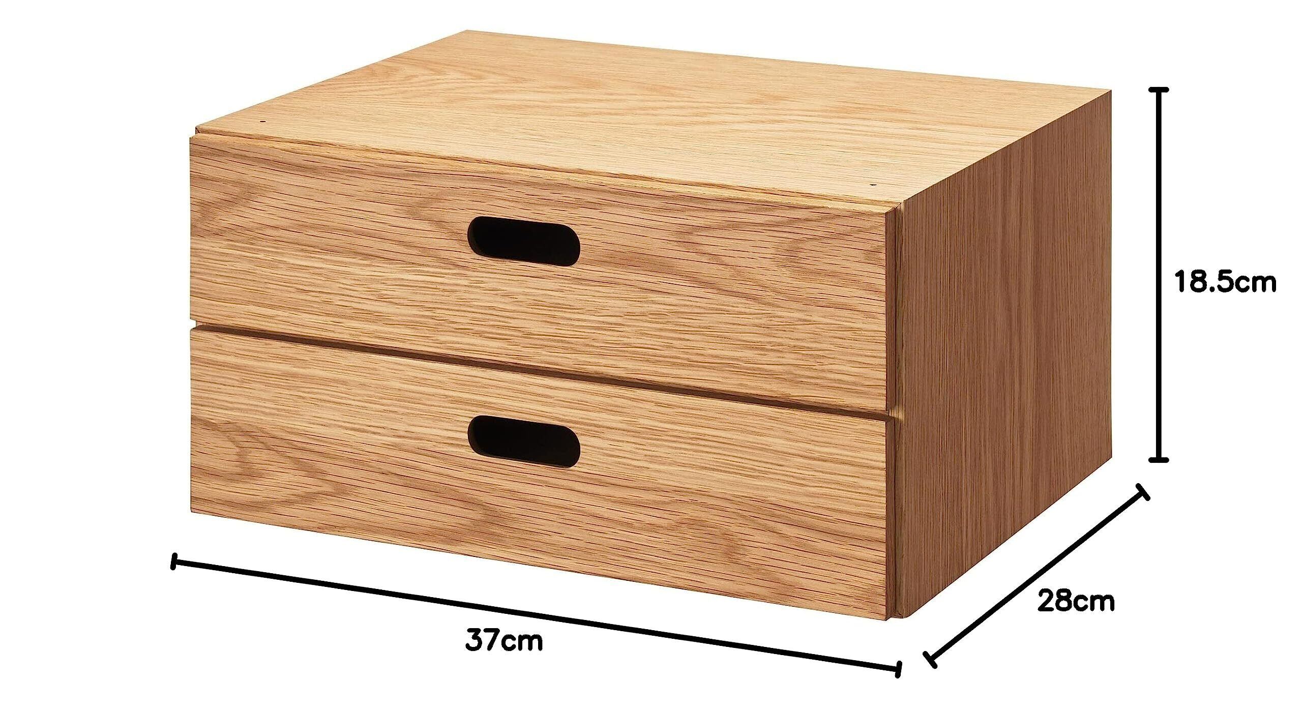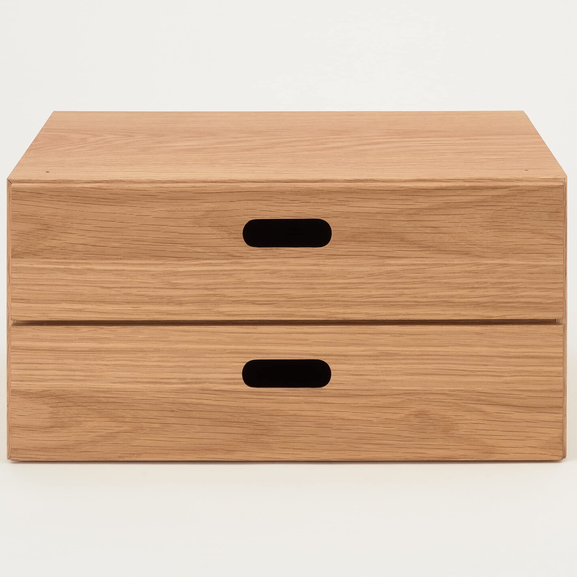 MUJI 無印良品 スタッキングチェスト 幅37×奥行28×高さ18.5cm ハーフ 引出し2段 オーク材突板 12381204