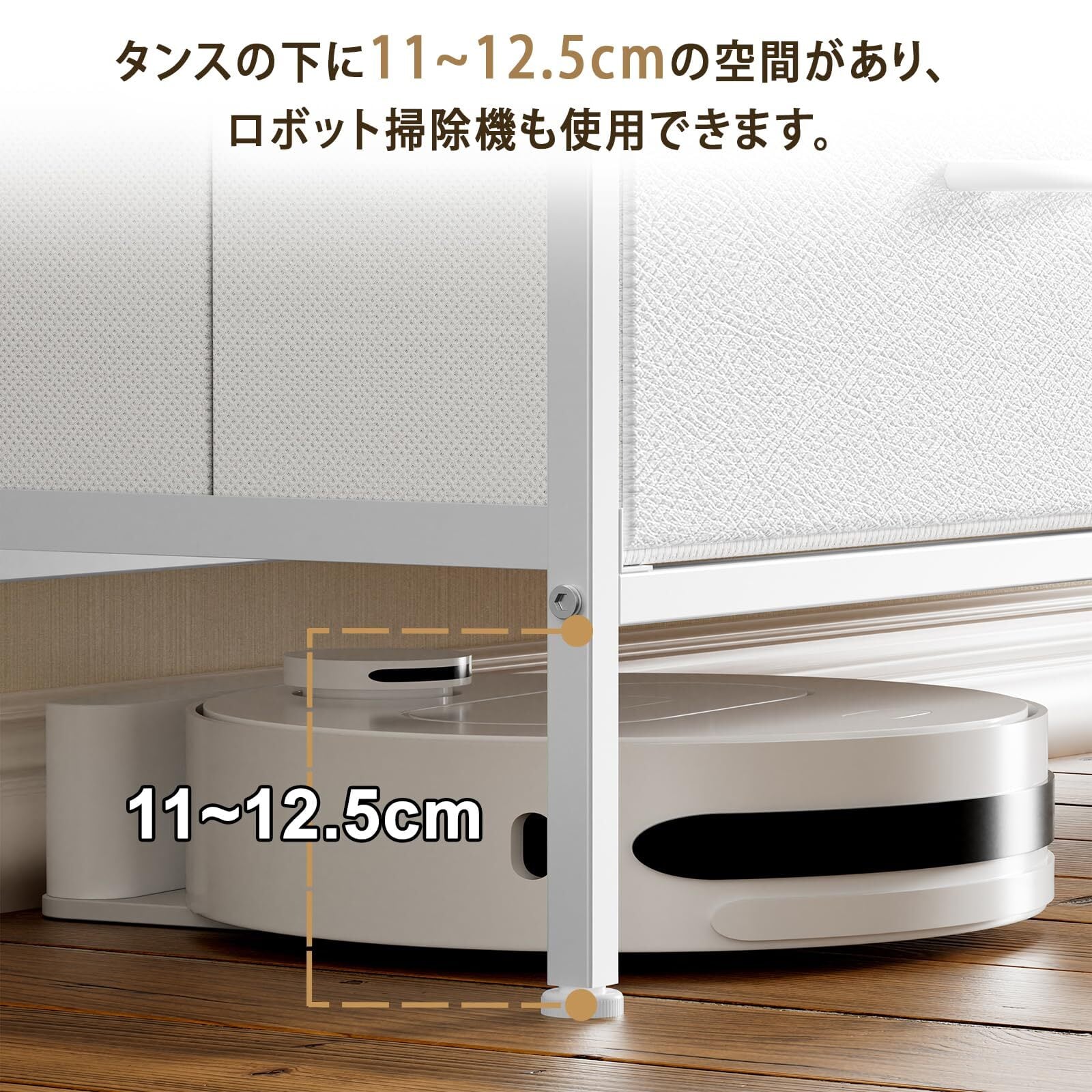 【こだわりの素材&細心な仕様設計】天然木より作られた木製取手やお部屋に温もりを添える木目調天板棚を使用しており、天板の角丸や床より10CMの高さでロボット掃除機もスムーズに通せます!