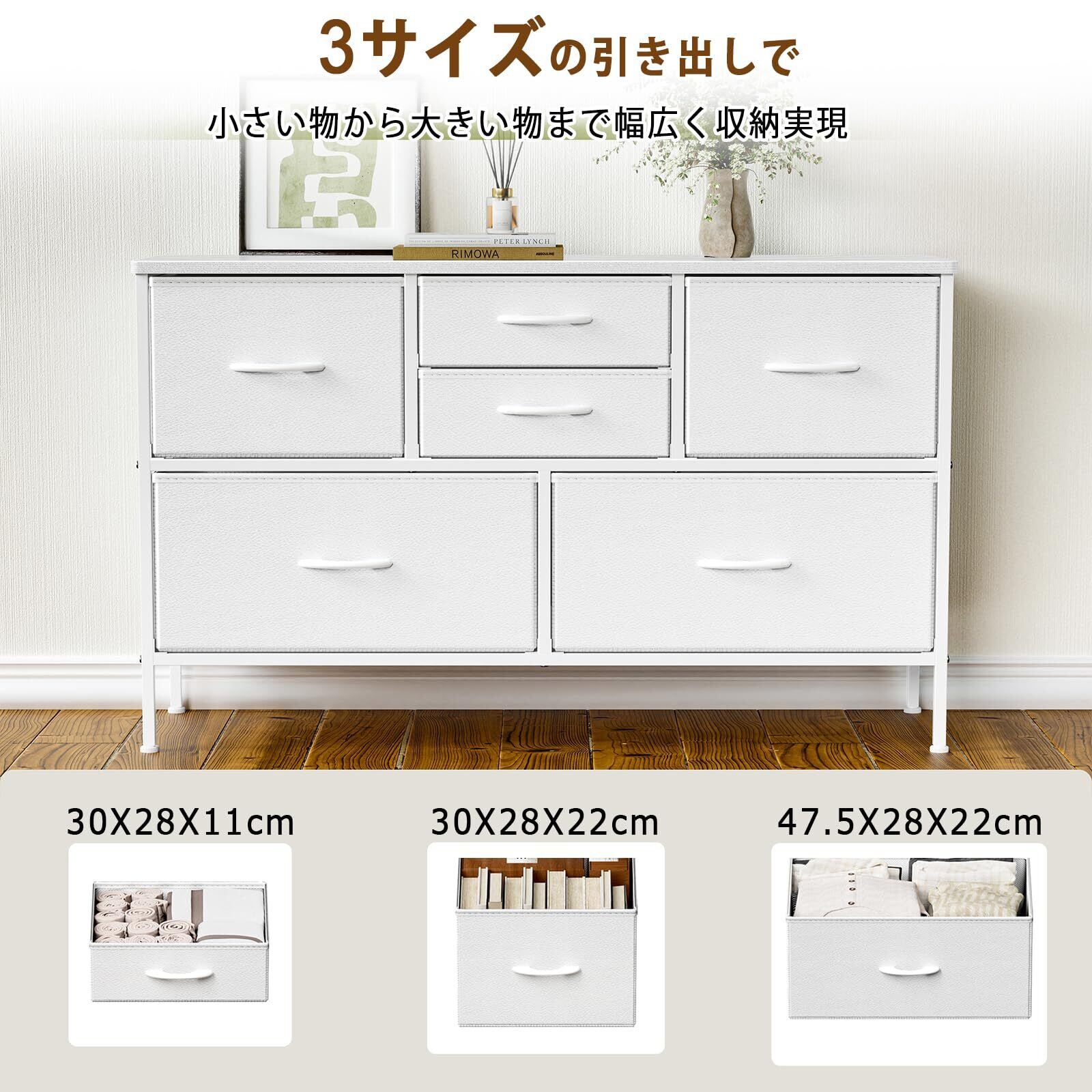 【114L大容量収納】合計6つの引き出しで114Lの大容量収納が実現でき、異なる3サイズの引き出しも小さい物から大きい物まで幅広く収納実現