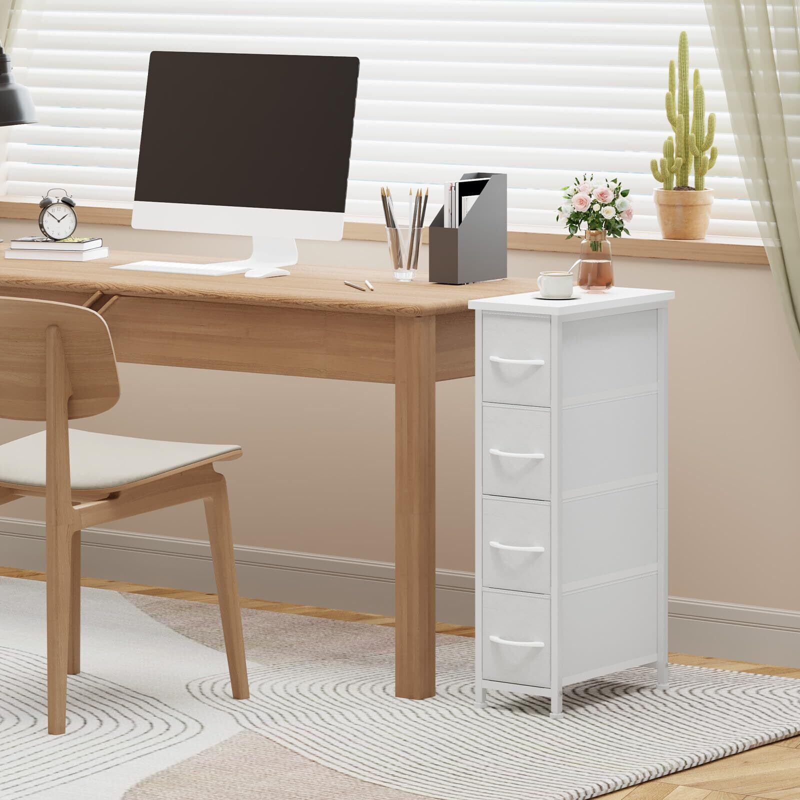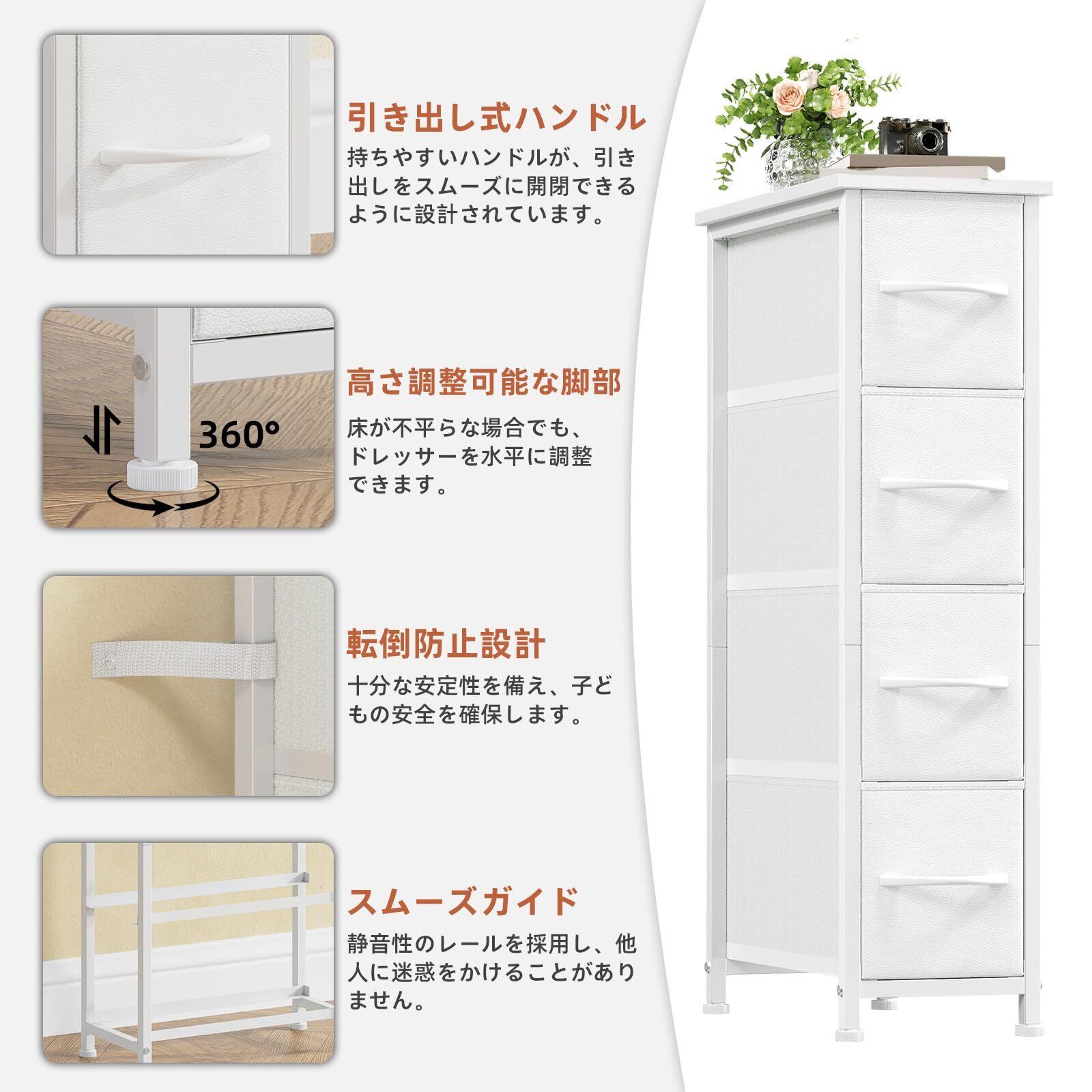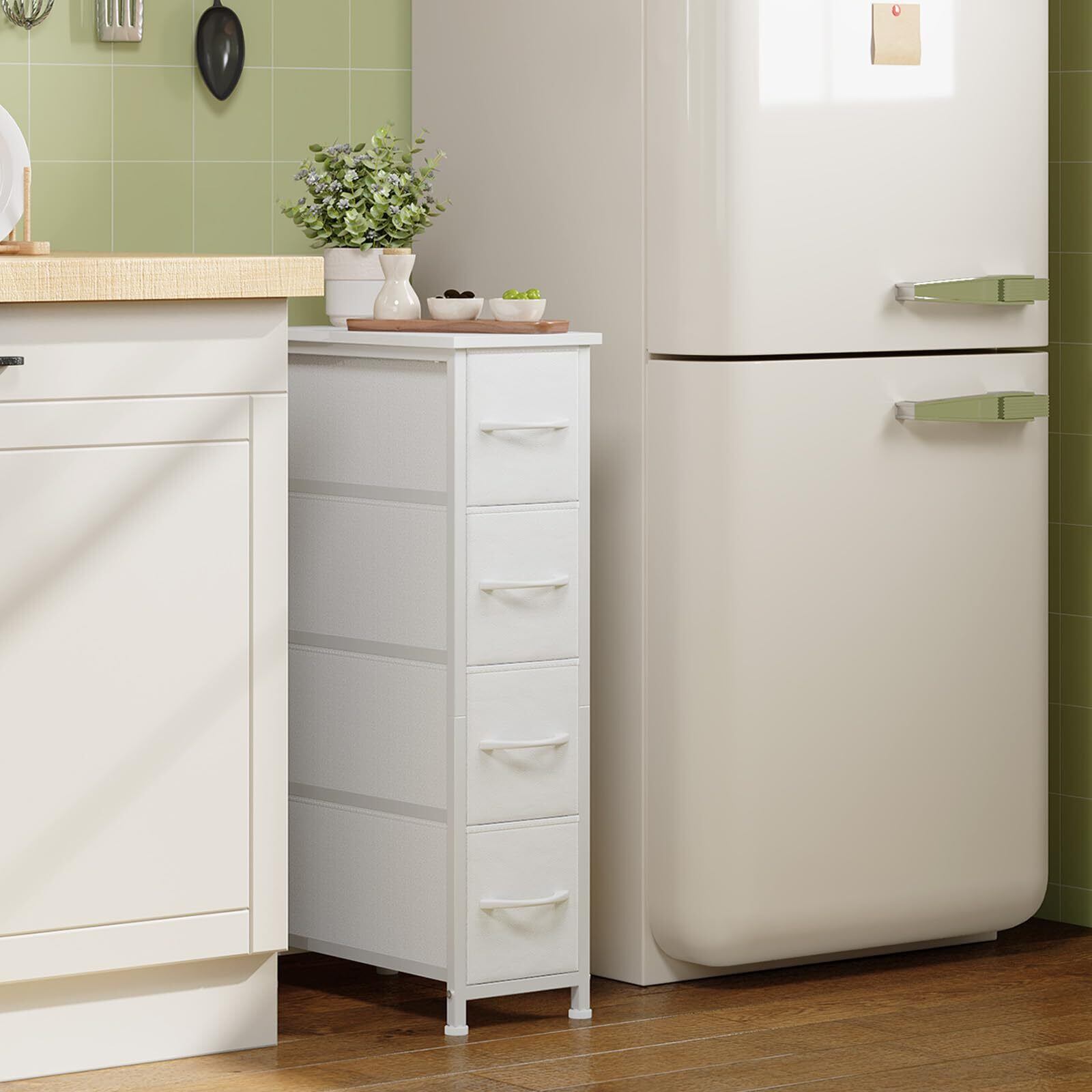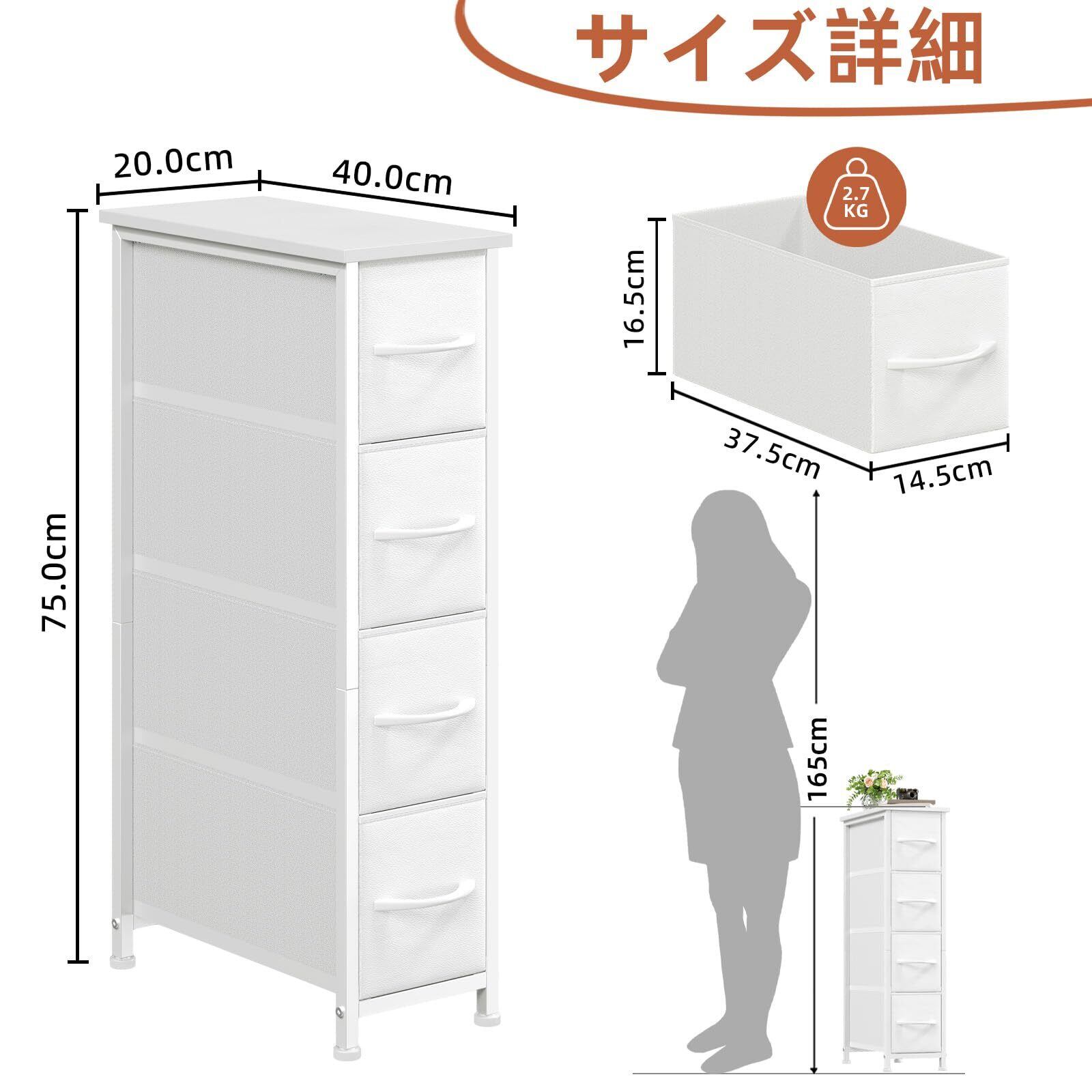 Somdot チェスト 隙間 スリム 収納 タンス 棚 引き出し 幅20×奥行40×高さ75cm 4段 布製 おしゃれ すきま キッチン 省スペース ランドリー 洗面所 脱衣所 ホワイト