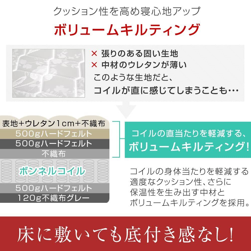 【おすすめポイント!】 ・身体を面で支え、硬めの寝心地のボンネルコイルマットレス ・薄型だけど、床に敷いても感底付き感なし ・パイピングを施した高いデザイン性 ・ISO9001認定工場で生産した安心の品質