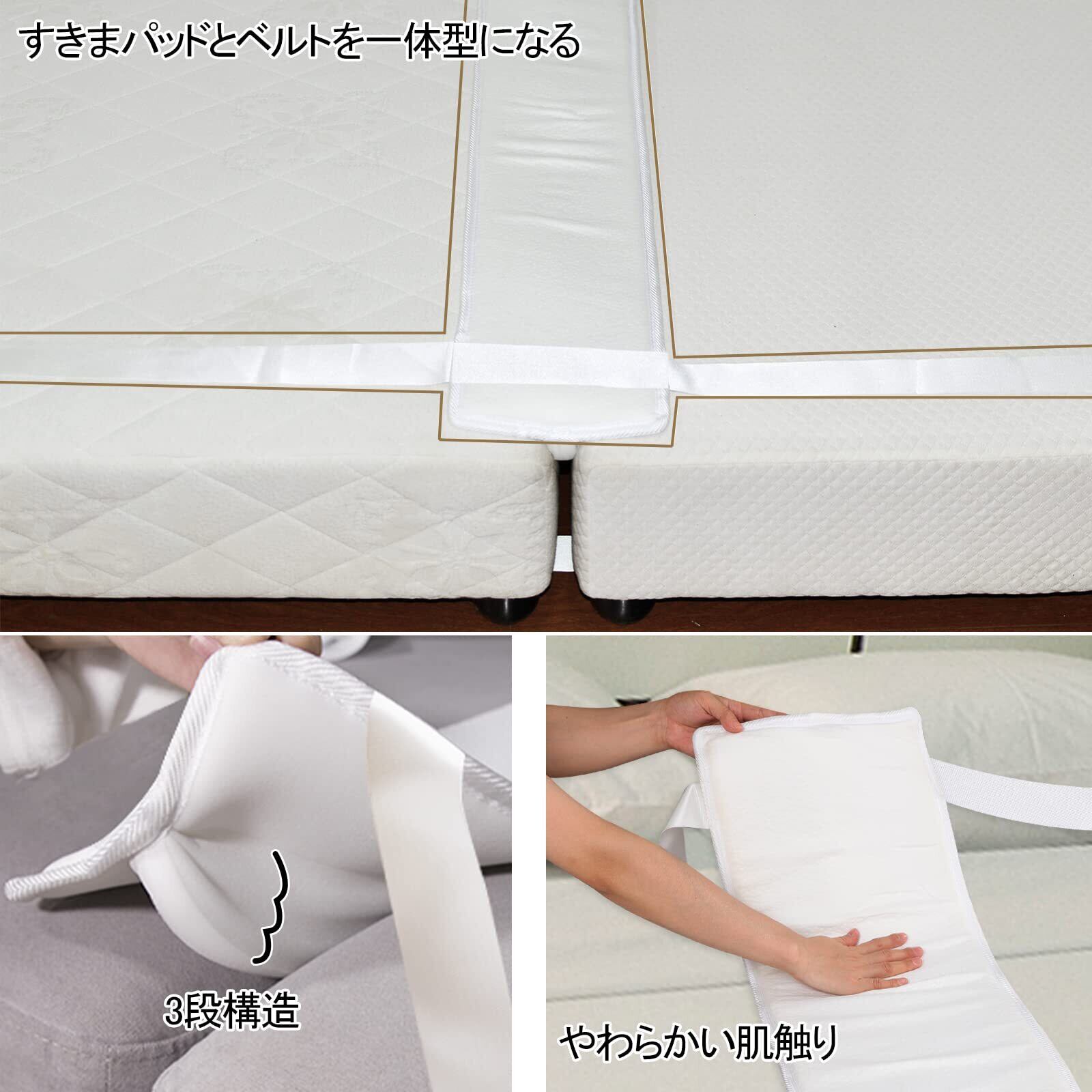 【こちらだけの一体型設計】こちらの隙間パッドと連結ベルトは一体型式で、すきまパッドが沈み込んだりすることがありません。