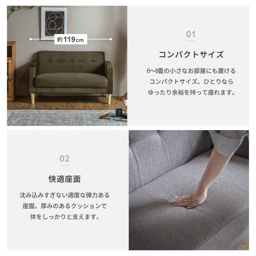 【コンパクトサイズ】6~8畳のワンルームにもぴったりな幅119cmのコンパクトソファ。