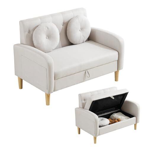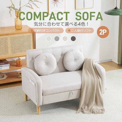 オーエスジェイ(OSJ) ソファ ソファー 2人がけ 収納付き 幅105cm 肘付き クッション付き コンパクト ローソファ 掃除機も通れる かんたん組立 2人掛けソファ 2人掛けソファー ベ—ジュ