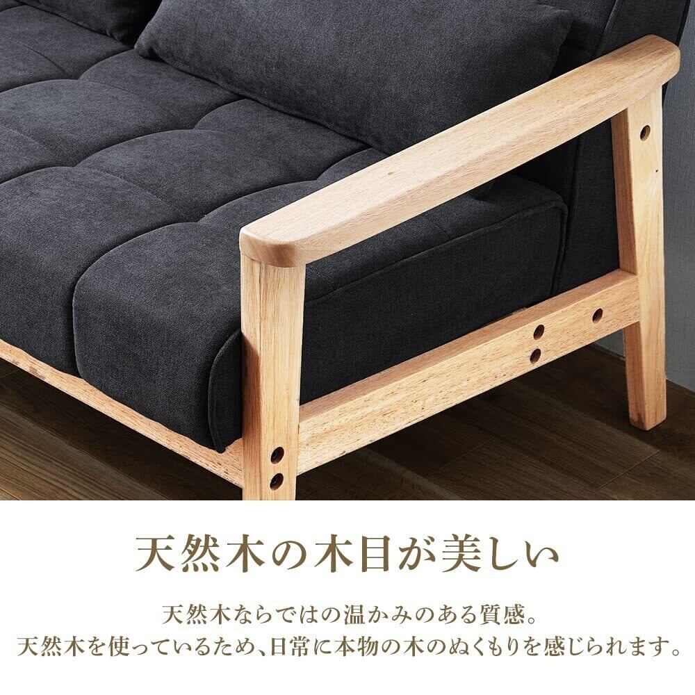 ひじ掛け、フレーム部分には天然木を使用。 天然木ならではの温かみのある質感。ナチュラルな仕上がりになっています。