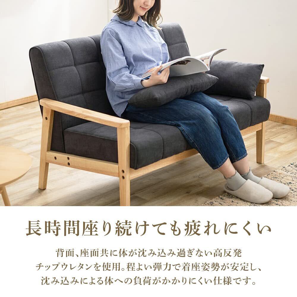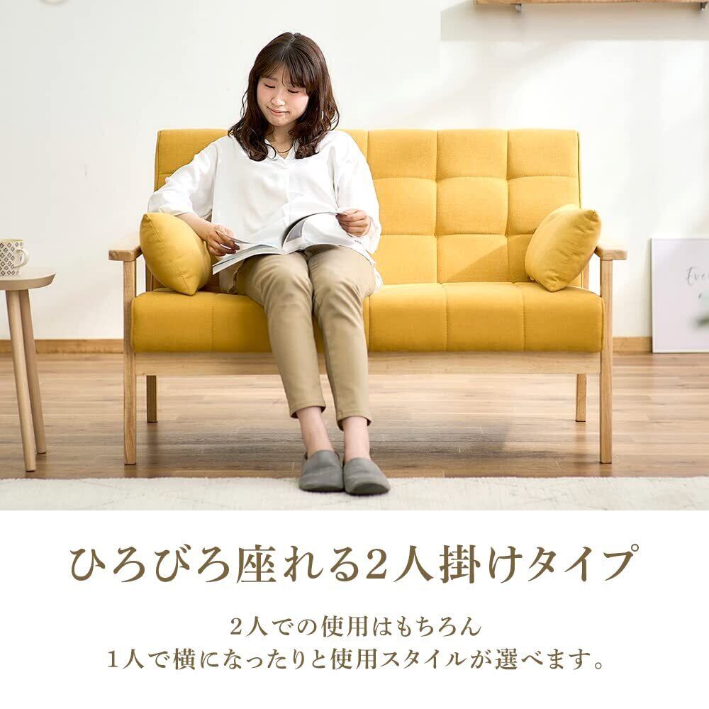温もりを感じる天然木フレームとやわらかな印象のファブリック生地で仕上げたソファです。 ひろびろ座れる2人掛けタイプ。 2人での使用はもちろん、1人で横になったり、カウチのようにして座ったりと使用スタイルが選べます。