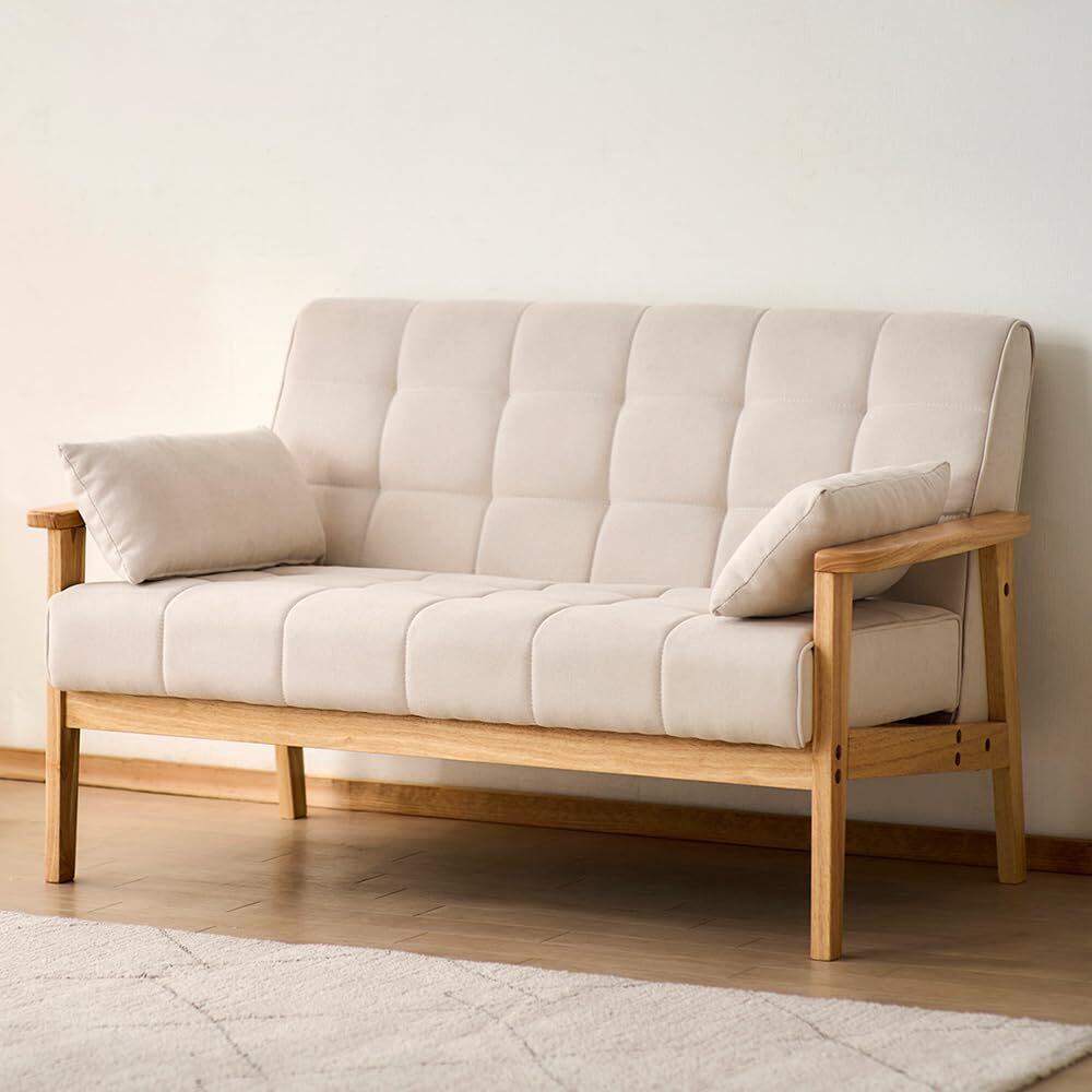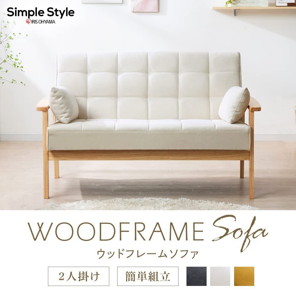 【簡単組立クッション付き】アイリスオーヤマ ソファ 2人掛け ウッドフレーム ファブリック 幅約125㎝ かんたん組み立て 天然木で日常にぬくもり すっきり美しい仕上がりWFS-2S オフホワイト