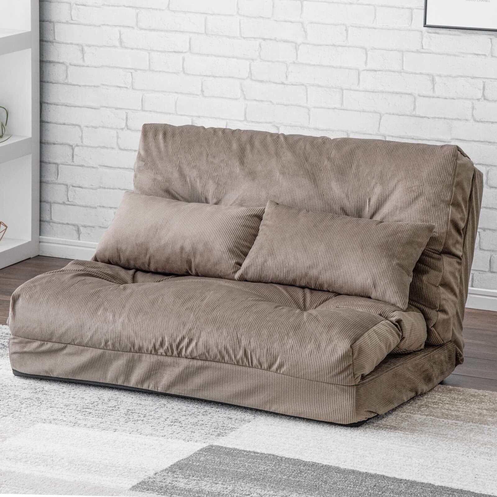 タンスのゲン ソファーベッド 3WAY 1人掛け 14段階リクライニング 極厚座面 クッション2個付 コーデュロイ生地 ローソファ フロアソファ ソファー ソファ ソファベッド グレージュ 15210070(85088)
