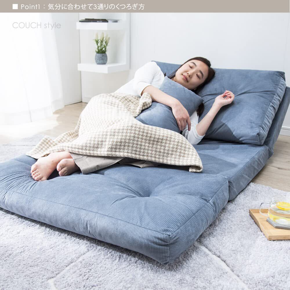 【スタッフのおすすめポイント!】・おしゃれで手触りも良い コーデュロイ生地 ・気分に合わせて使える3つのスタイル ・背もたれ14段階リクライニングでお好みの角度で寛げる ・底着き感のない厚めの座面 ・ローテーブルやこたつにも合わせやすい高さ ・同色クッション2個付き