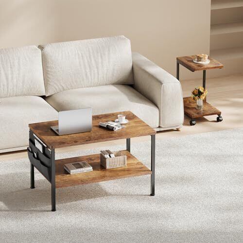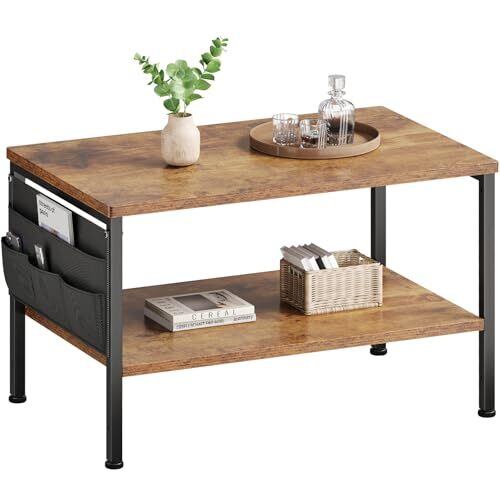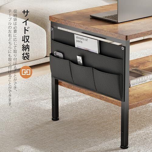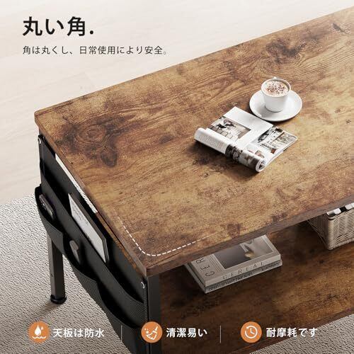 ローテーブル収納付き:サイドには、他のローテーブルにはない布製の収納袋が付いており、リモコンやキーなどの小物類を収納できます。2段の収納スペースは、リビングの必需品を収納するのに十分なスペースを提供します。あなたの応接間をいっそうきれいにすることができます。