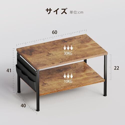 YeTom センターテーブル ローテーブル 一人暮らし ローテーブル 収納付き 幅60cm 層板は調節可能 コーヒーテーブル サイドテーブル ピンテージ