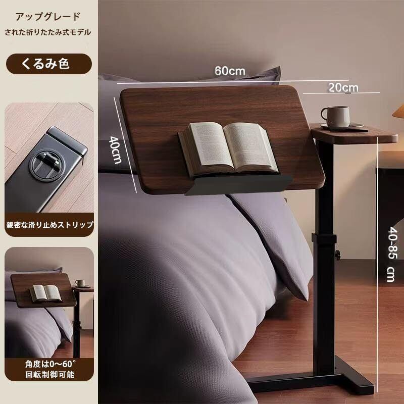 LBFXQ ベッドサイドテーブル 昇降式 幅60×奥行40×高さ40-85cm ベッドサイドテーブル 360°回転 ソファーテーブル 介護テーブル 高さ調整 耐水 高温に強い 安定 耐荷重がいい 耐久性 小型 省スペース C字型 目に見えないキャスター 組立簡単 小型家具 家用昇降式テーブル