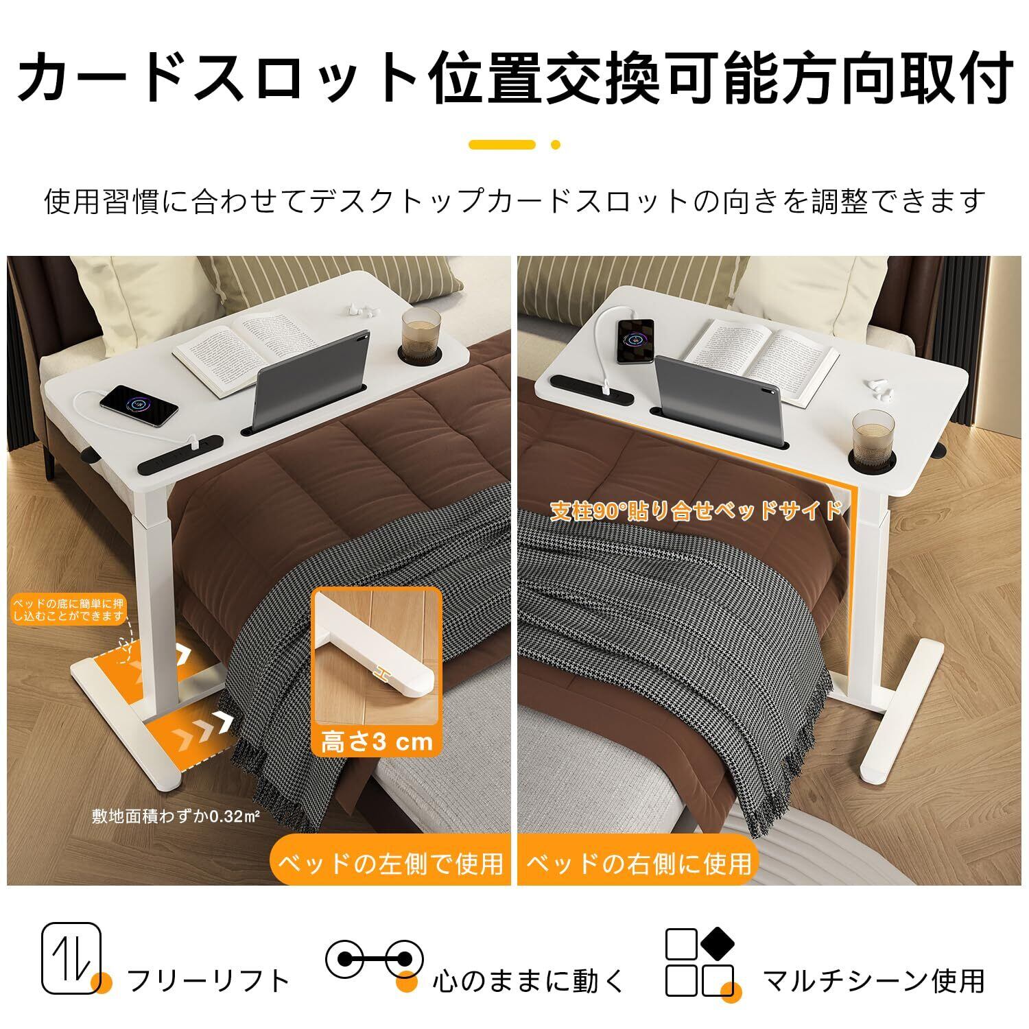 【多機能サイドテーブル】大きな天板は長さ80cm、幅40cmで、食事、読書、書き物、ノートパソコンの使用に便利です。 サイドテーブルの上部にはカップの転倒防止用の溝、携帯電話、IPADホルダー、電源、USBソケットが付いており、非常に実用的です。