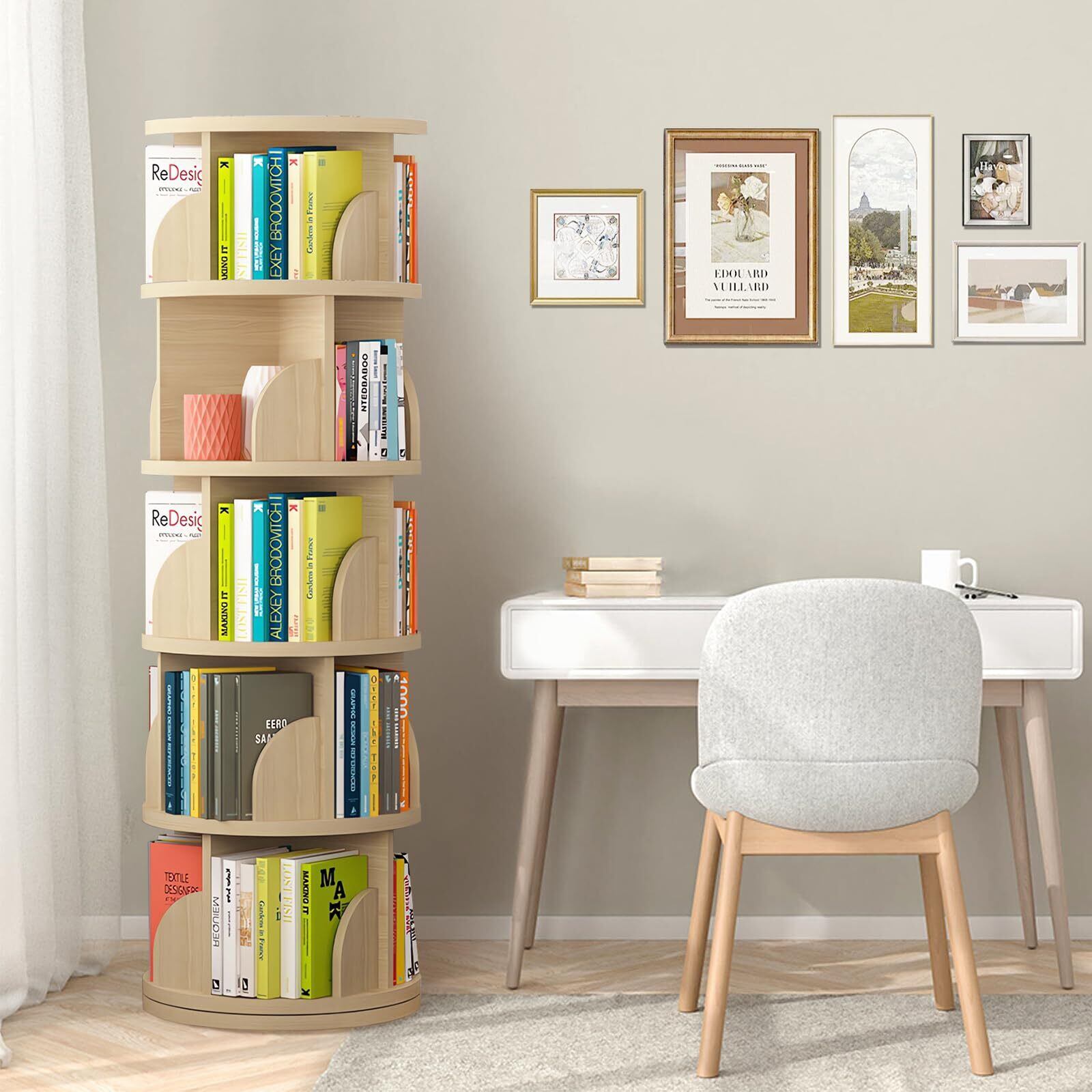多用途でどんな部屋にもフィット:高品質な密度板を使用したこの回転式本棚は、優れた安定性と耐久性を備えており、リビング、寝室、バルコニー、オフィス、廊下など、さまざまな場所で使用できます。本棚としてはもちろん、収納棚や展示棚、整理棚としても役立ちます。回転式本棚は、空間を美しく整理し、機能的で実用的なデザインを提供します。