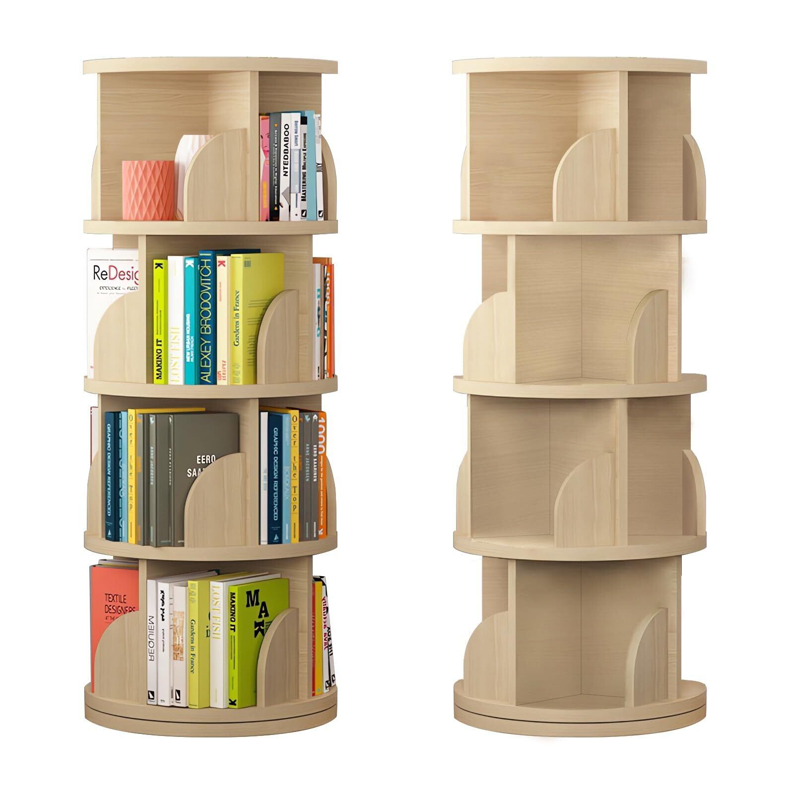 LeYoi 本棚 回転式本棚 大容量 直径46CM A4紙が入る高さ 漫画絵本棚 タワーラック 隙間収納 絵本ラック 文庫本 ブックシェルフ 収納棚 省スペース CD/DVDラック (木目調, 4段)