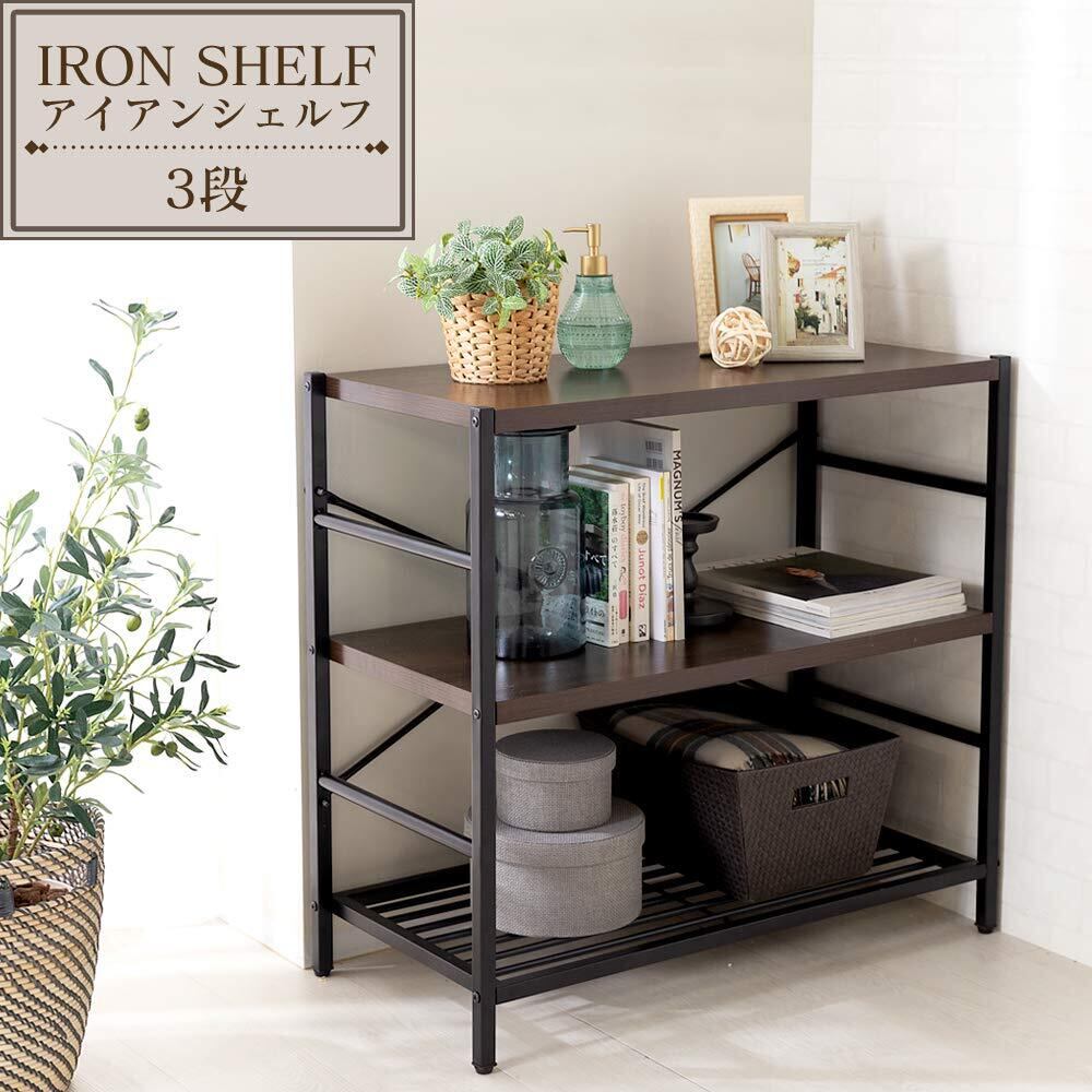 アイリスプラザ 棚 本棚 収納 スチールラック おしゃれ おもちゃ キッチン 収納 オープンシェルフ ダークブラウン 3段 AJ-S3