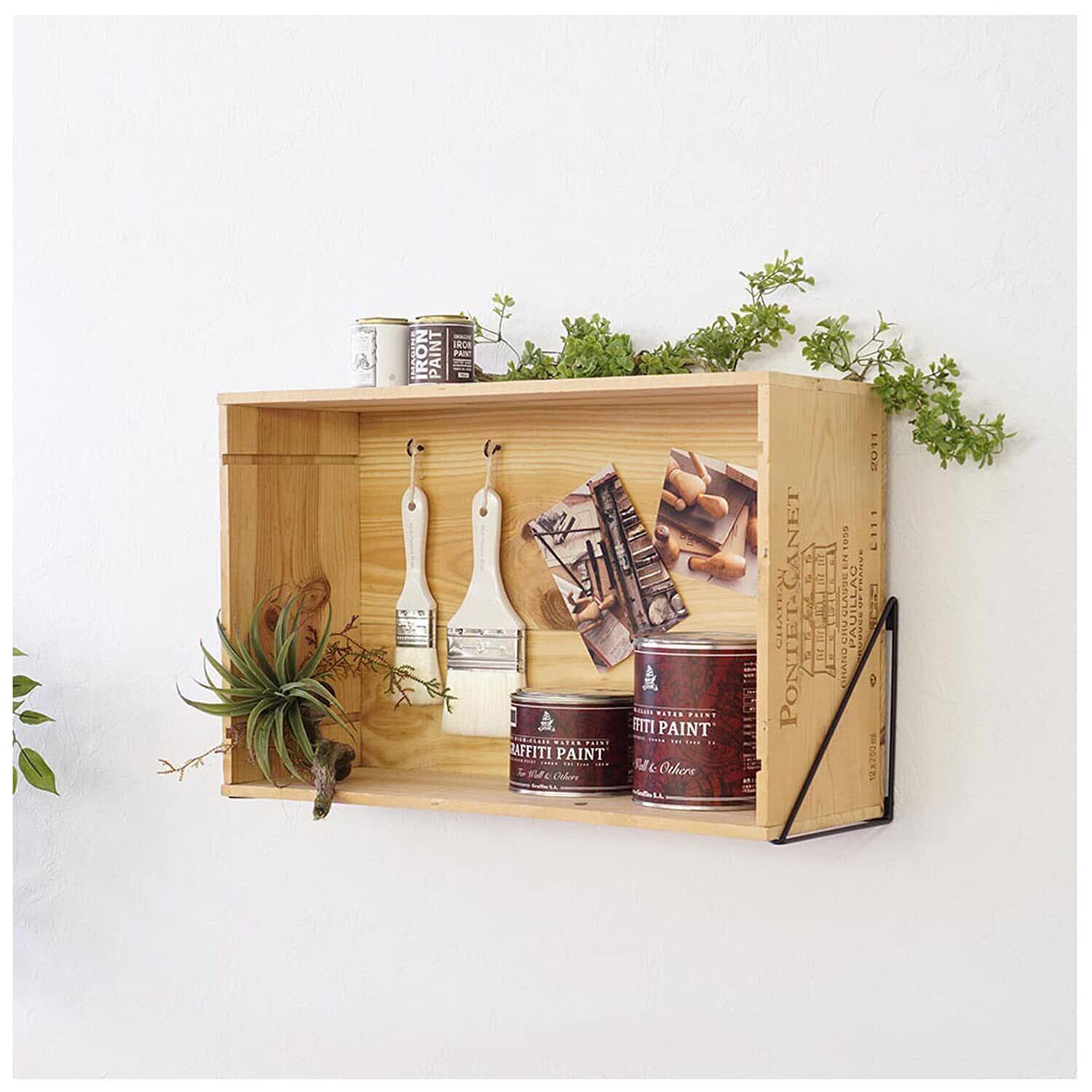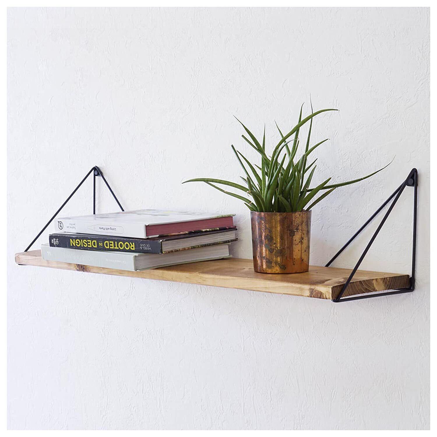 市販の1×8材、幅200mmのパイン材どちらにも対応。自分の好みの材質、サイズの棚をDIYで作れるトライアングルフレームです。壁を大きく傷つけず、石膏ボードにも付属の専用ピンで固定OK。