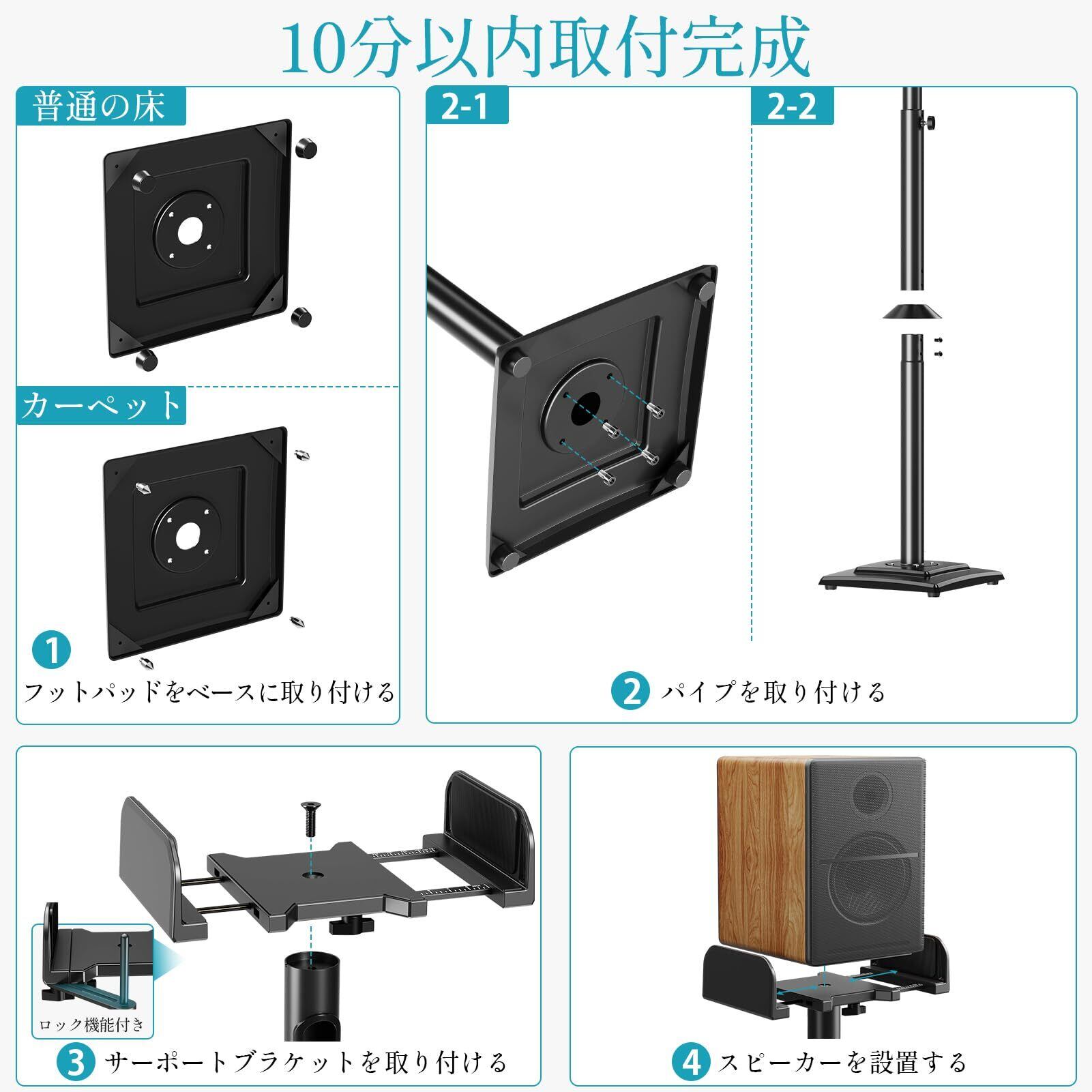【商品仕樣】5kg以内のスピーカーを設置可能なポール型スピーカースタンドです。幅127~254mm以内スピーカーに対応でき、BOSE、JBL、ソニー、ヤマハなど様々なブランドに適用しています。