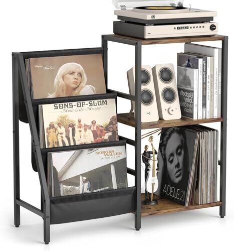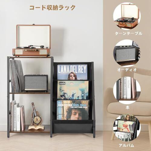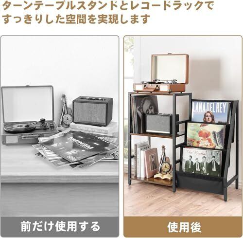 多機能アナログレコード収納棚:この3段の収納棚はレコードプレーヤー・アナログレコード・Bluetoothスピーカー・書籍・雑志・CDなどを格納するのに使うことができます。さまざまな収納のニーズに満たします。収納棚の一番上の平面にありあらゆるサイズのレコードプレーヤーに適します。