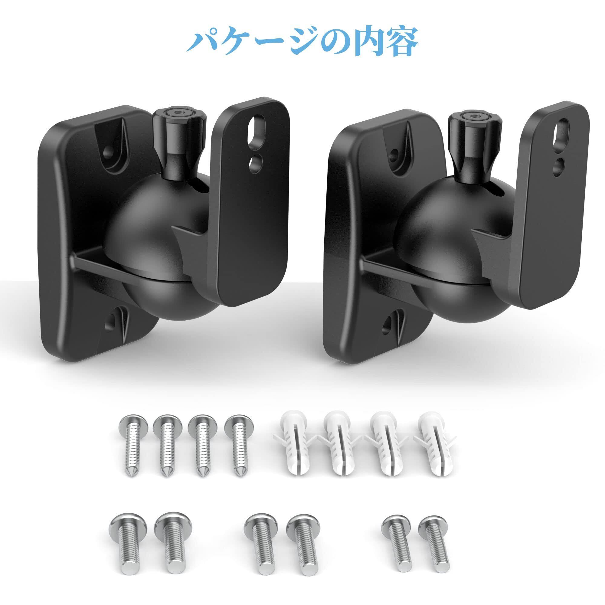 【2個1組】Cozycase スピーカースタンド「壁掛け/壁/小型/高さ調整/クランプ/金具/回転可能/万能壁掛け/おしゃれ」 ネジ付き 良い安定性 スピーカー ブラケット「天井/本棚/部屋/喫茶店/学校」などに適用 耐荷重3.5KG 黒「ブラック-2台」