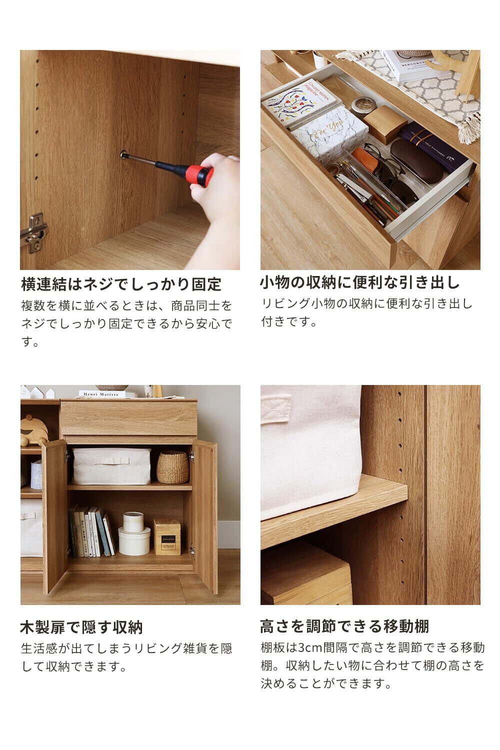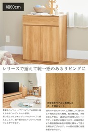 【商品説明】豊富なラインナップでリビングの家具を揃えられるコーディネート家具ナチュリカ。買い足しのときもナチュリカシリーズで揃えることで、統一感のあるインテリアを保つことができます。NTU-7060DH NAは扉付 引出付き リビングキャビネット。リビング小物の収納に便利な引き出し付き棚板は3cm間隔で高さを調節できる移動棚。収納したい物に合わせて棚の高さを決めることができます。扉内の移動棚の奥行は32.4cm。市販の収納ボックスを使えば、細かなリビング小物もすっきりと取りやすく整理できます。扉内の下部には配線用の穴があるので、Wi-Fiルーターやゲーム機を扉内に隠して収納できます。移動棚と背板の間には、配線用の隙間があります。コードを下に通すことができるので、Wi-Fiルーターやゲーム機を移動棚の上にも収納できます。天板が背面に少し出ているので、背板と壁の間に配線を通したり、巾木をよけたりできる隙間ができます。背面は化粧あり。部屋の間仕切りとしても使用できます。白井産業の他の商品は、タイトルの「白井産業(shirai)」をクリックする事で確認していただけます。