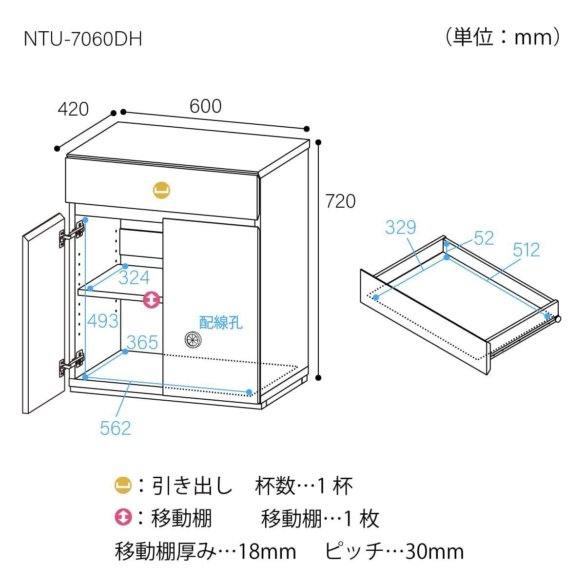 NTU-7060DH NAは扉付 引出付き リビングキャビネット。