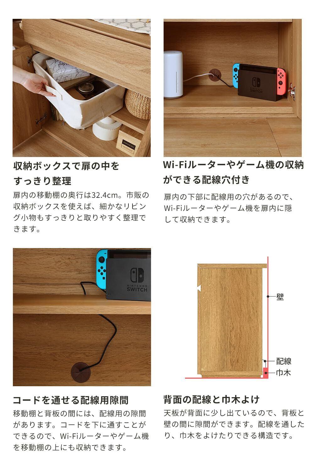 扉内の下部には配線用の穴があるので、Wi-Fiルーターやゲーム機を扉内に隠して収納できます。