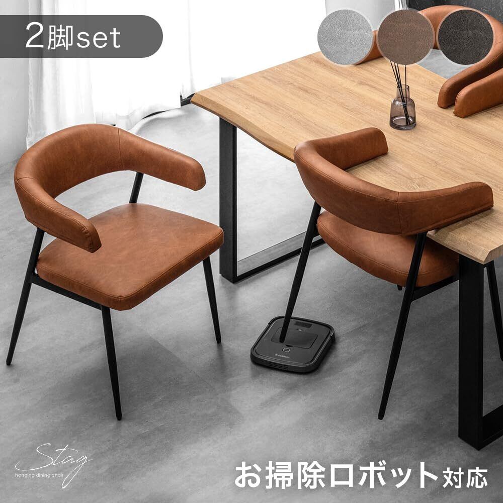 タンスのゲン ダイニングチェア 【2脚セット】 肘付き ハーフアーム ハンギング お掃除ロボット対応 レザー調 スチール脚 カフェ シンプル 83200032(89541)