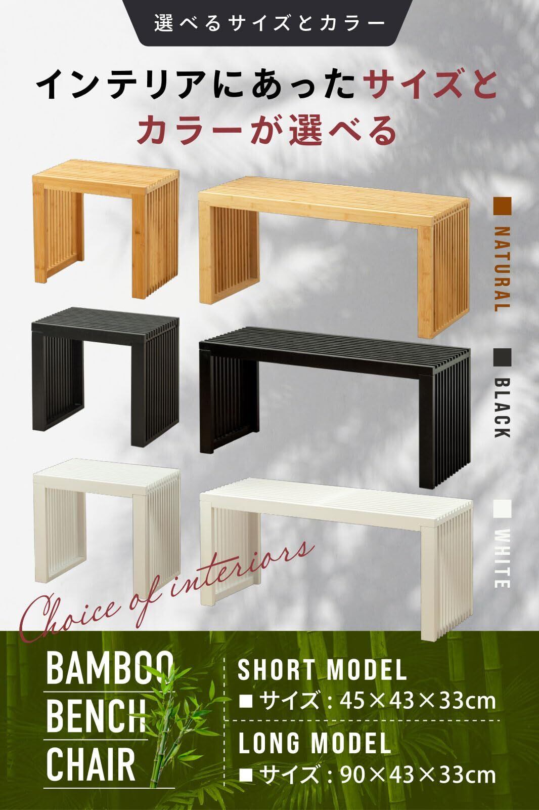 【インテリア雑誌『I'm home』掲載】 竹製ベンチチェア ダイニングベンチ 竹 椅子 玄関椅子 天然竹材 天然竹製チェア 屋外 日本語説明書 ナチュラル ブラック ホワイト 90x43x33cm 45x43x33cm mugenbo (ナチュラル, 90㎝)