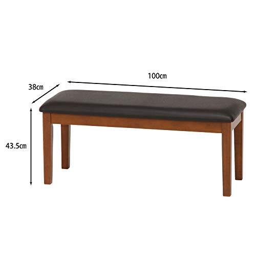 不二貿易(Fujiboeki) ダイニングベンチ 2人掛け 幅100×奥行38×高さ43.5cm ブラウン 天然木 合皮 長椅子 簡単組み立て スノア 96785