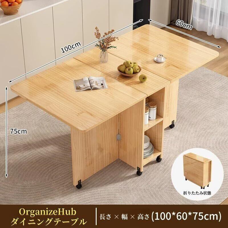 OrganizeHub ダイニングテーブル 折りたたみダイニングテーブル 食卓 4人用 伸長式 木製 コンパクト 省スペース 軽量 簡単な組み立て モダンデザイン キャスター付き 単品 エコ素材 おしゃれ 100幅x60奥行きx75高さcm